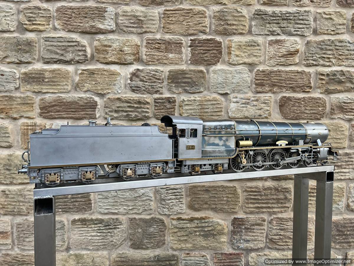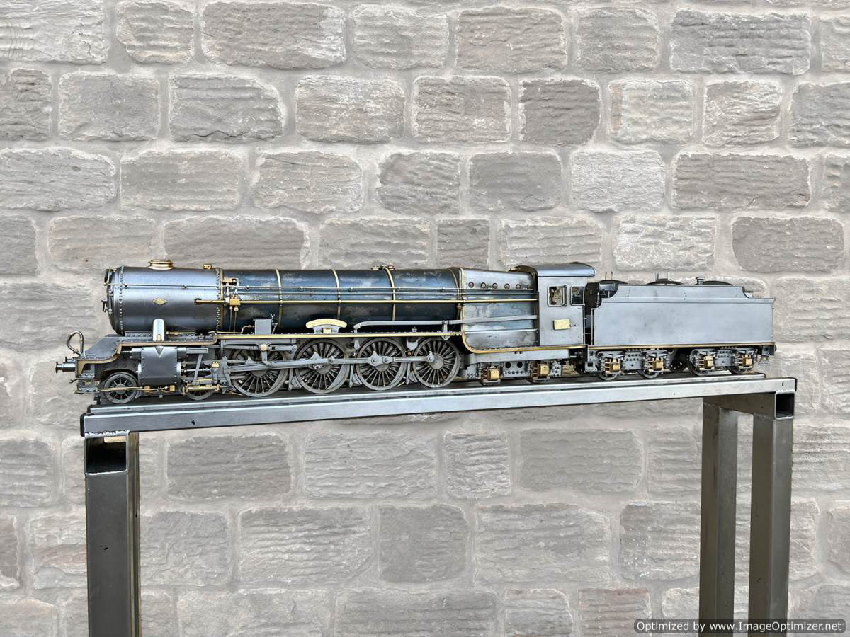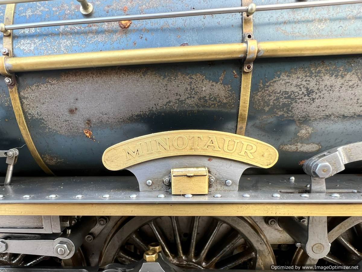 Here we have a 2 1/2" gauge 4-8-4 'Monitaur' broadly to the 'Toronto Terrier' and 'Ursa Maximus' designs by Jas. A. Joslin. Built by Mr F Hardstone in 1938 and the Model engineering exhibitions Championship Cup winning locomotive for that year. As you'd expect another particularly fine example of model engineering.