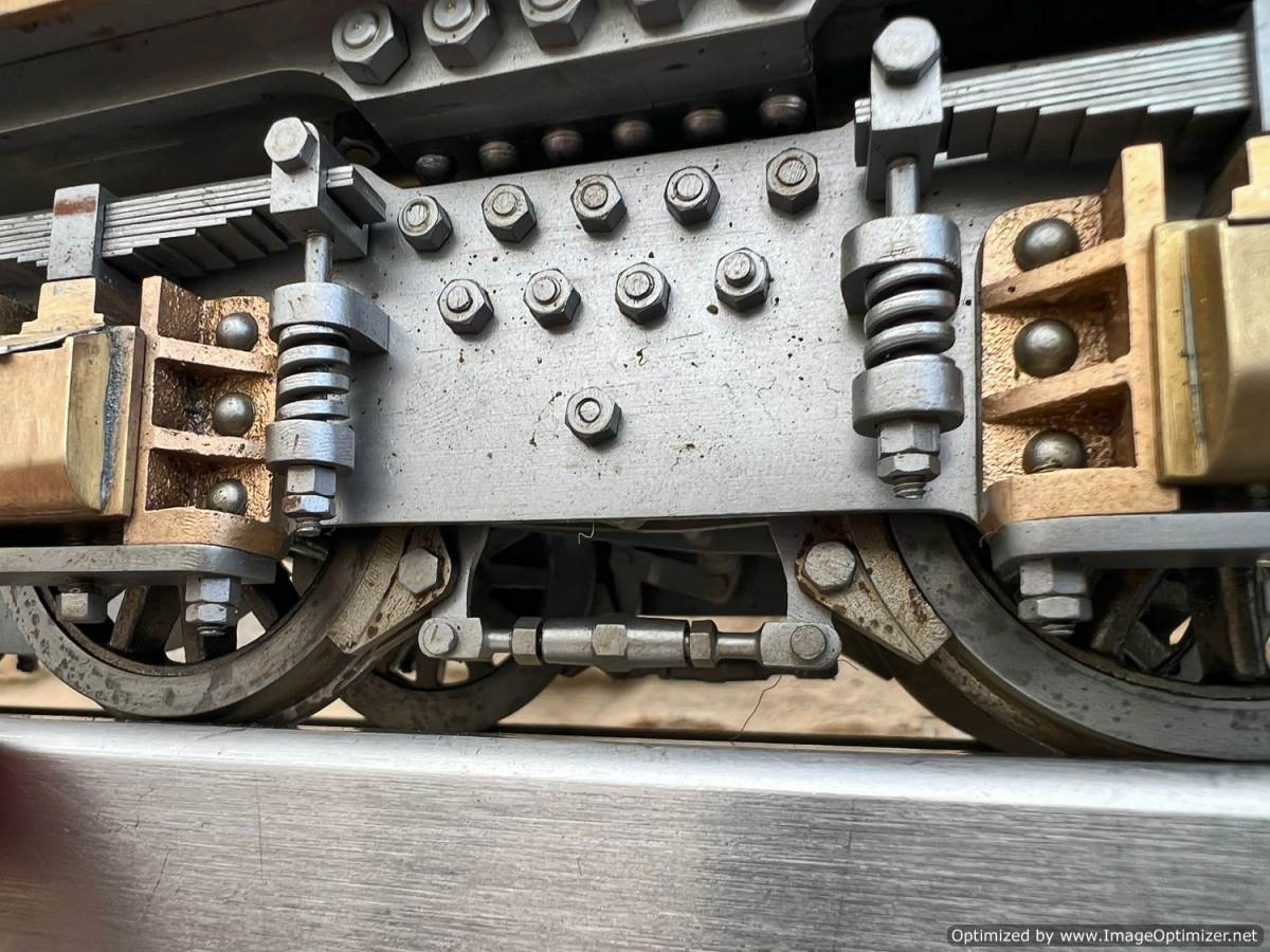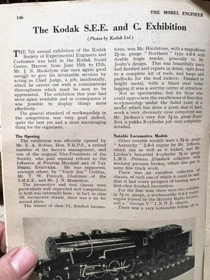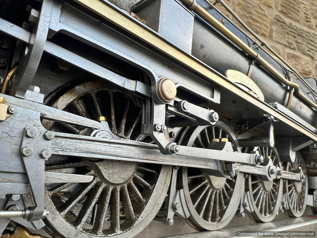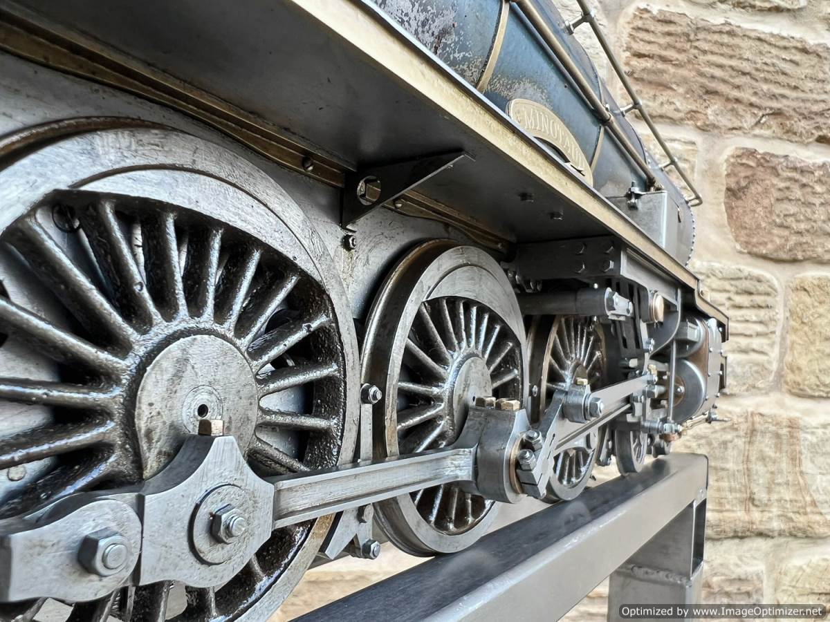Here we have a 2 1/2" gauge 4-8-4 'Monitaur' broadly to the 'Toronto Terrier' and 'Ursa Maximus' designs by Jas. A. Joslin. Built by Mr F Hardstone in 1938 and the Model engineering exhibitions Championship Cup winning locomotive for that year. As you'd expect another particularly fine example of model engineering.