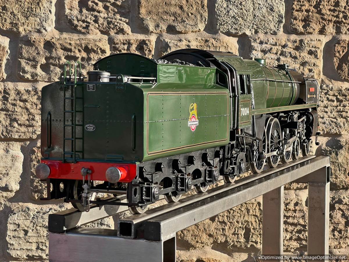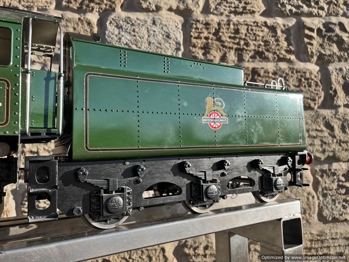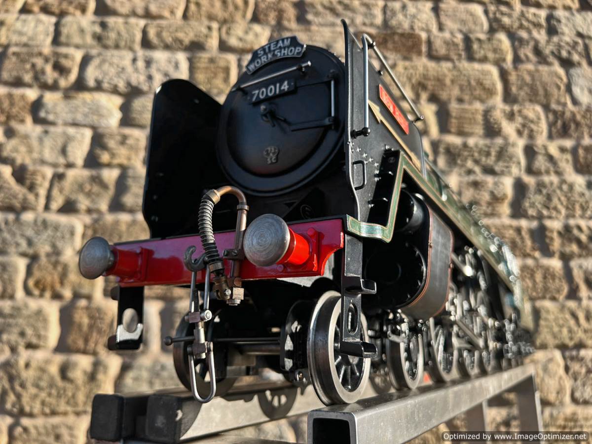 Here we have a really crisp and tidy 3 1/2" BR Britannia. Beautifully machined and finished for display in the builder's home. Clearly built as a running model, but not quite over the final hurdle, this is a tricky model for us to know which route to chose here at Steam Workshop, so we are offering it with 2 prices, either as the model currently is, missing superheaters, blast pipe and front end plumbing, axle pump plumbing, lubricator and of course commissioning, or fully finished off for you here in the works, tested and ready to play.