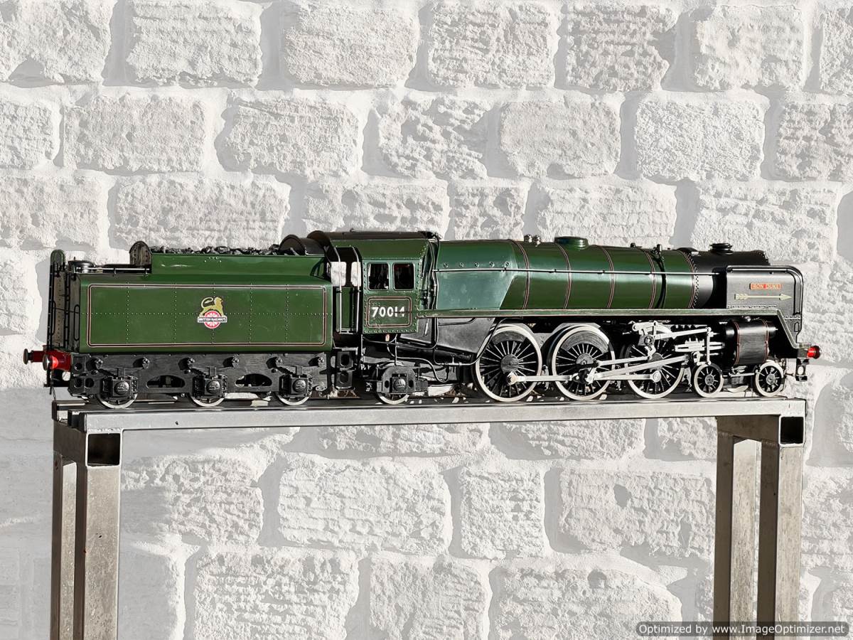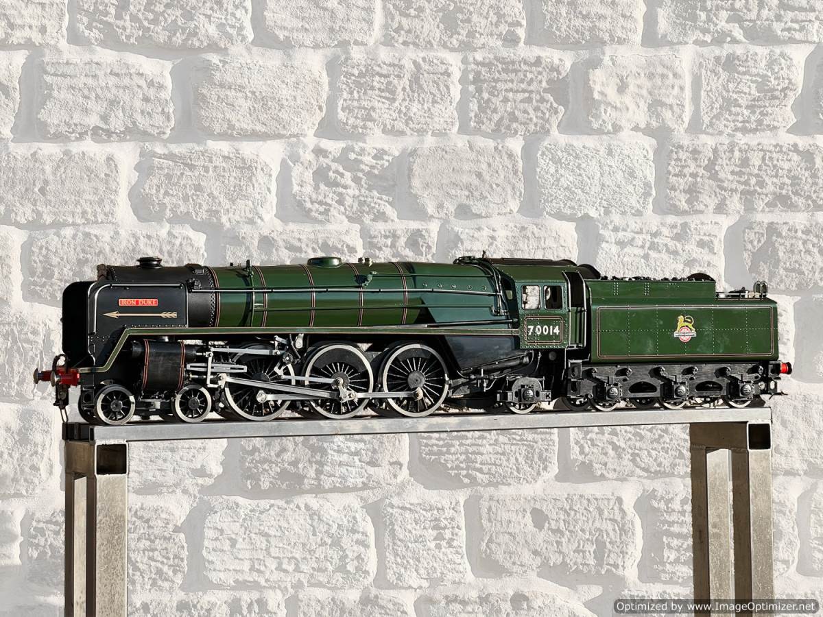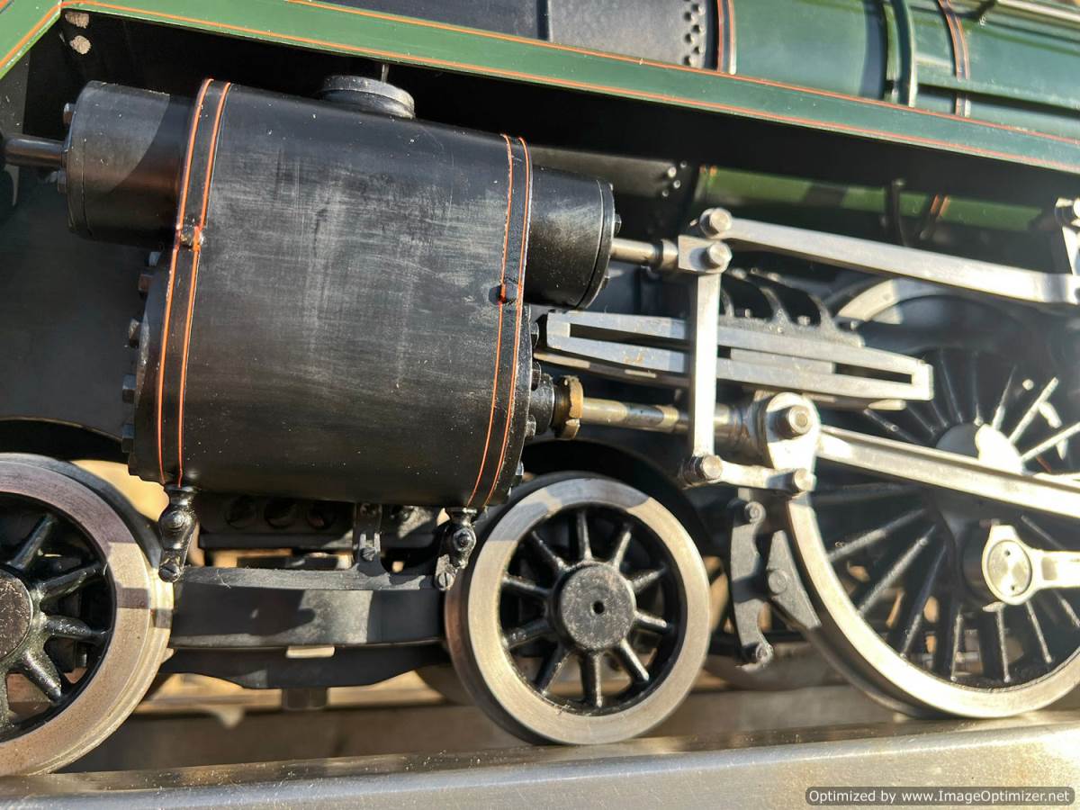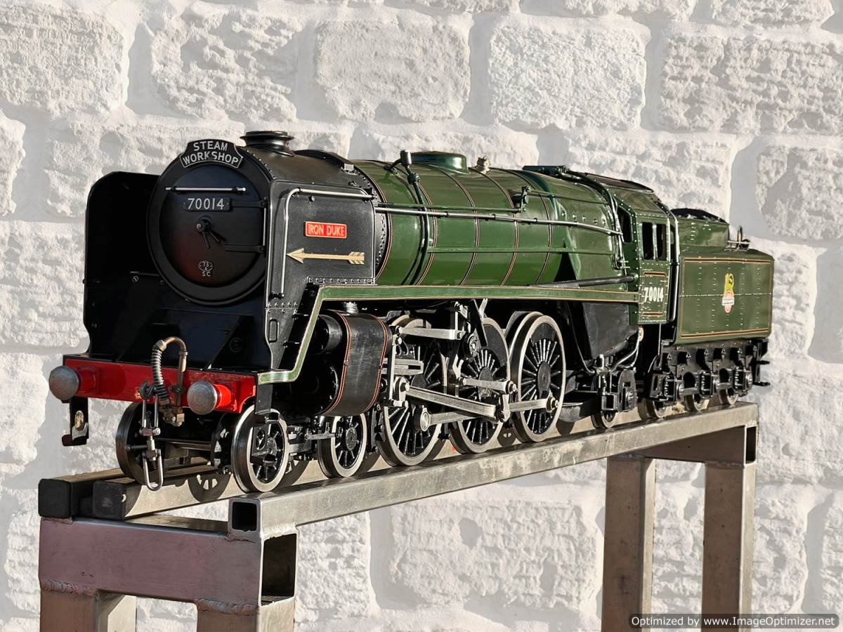 Here we have a really crisp and tidy 3 1/2" BR Britannia. Beautifully machined and finished for display in the builder's home. Clearly built as a running model, but not quite over the final hurdle, this is a tricky model for us to know which route to chose here at Steam Workshop, so we are offering it with 2 prices, either as the model currently is, missing superheaters, blast pipe and front end plumbing, axle pump plumbing, lubricator and of course commissioning, or fully finished off for you here in the works, tested and ready to play.