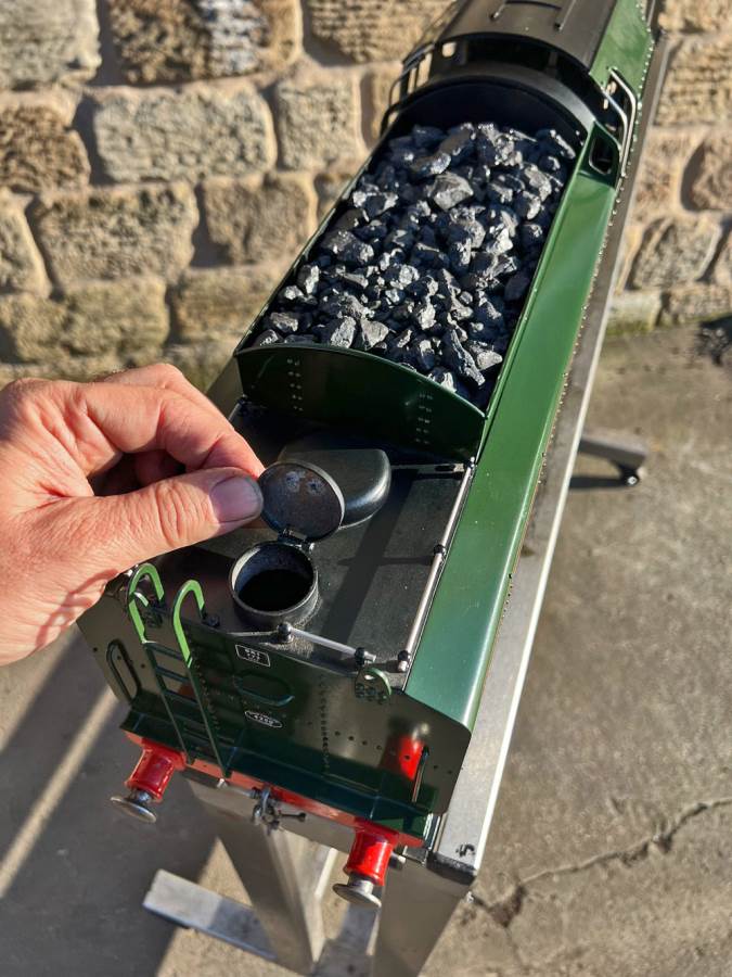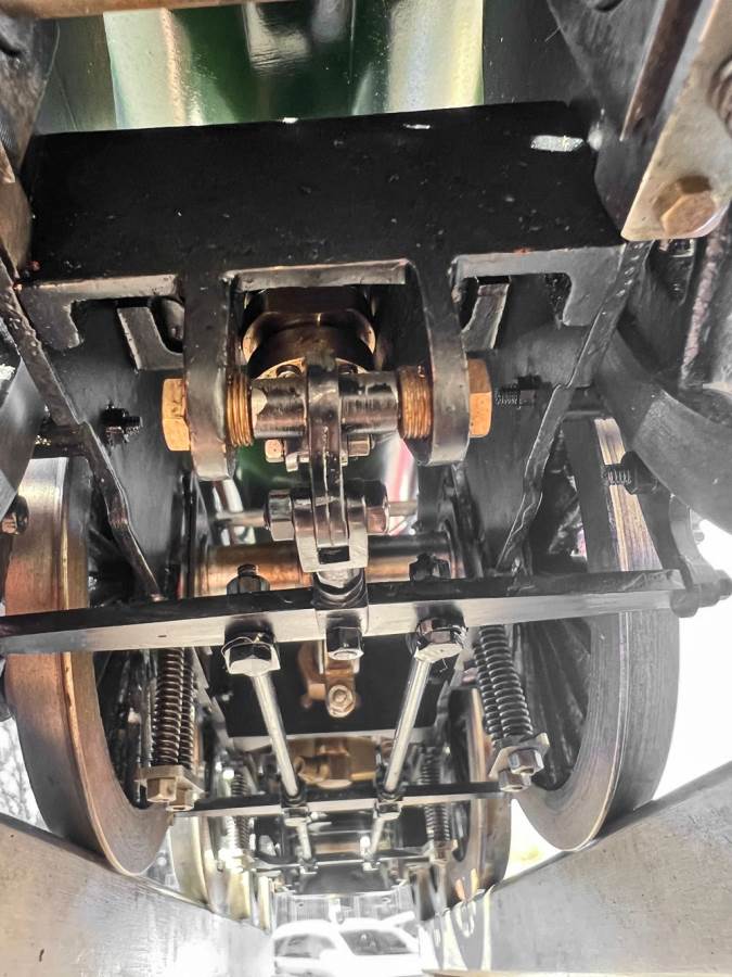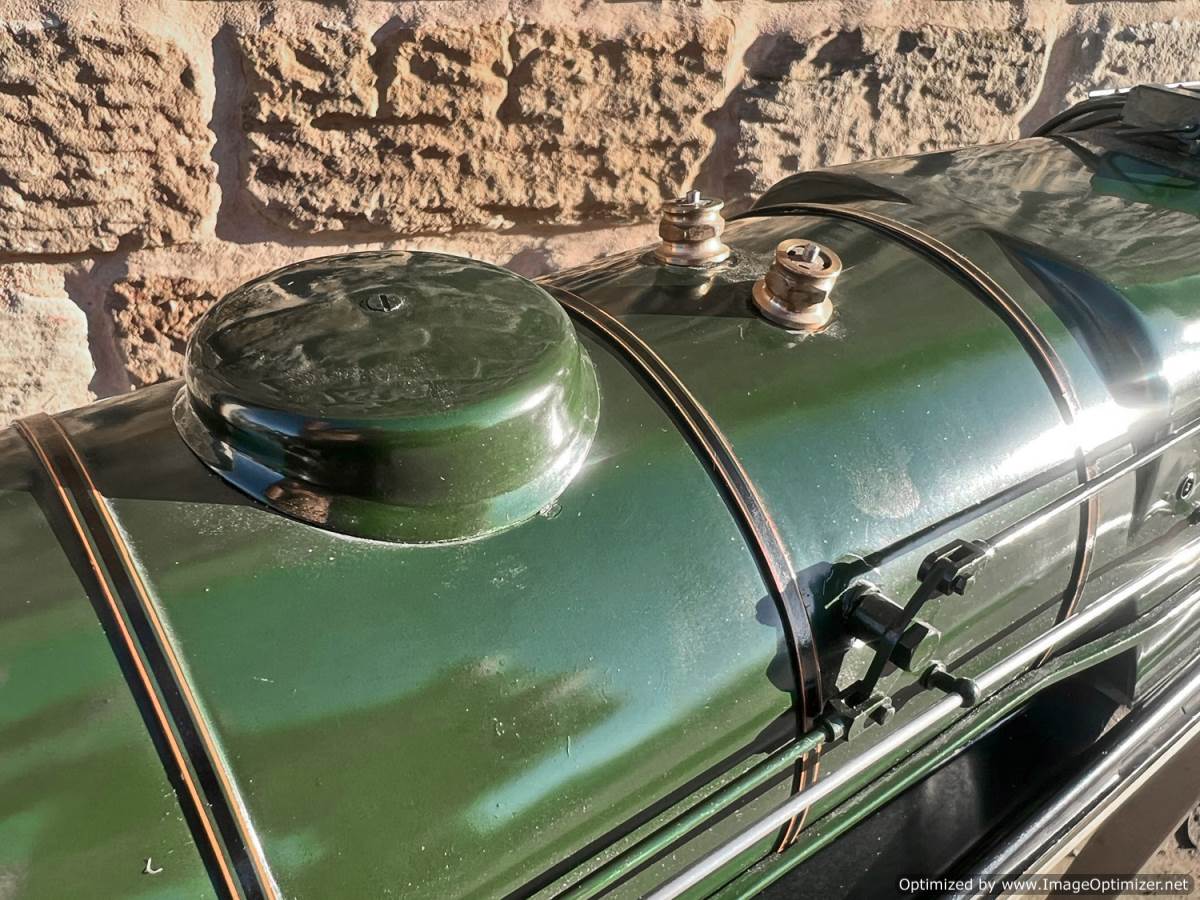The silver soldered copper boiler looks really nicely made and can come with fresh hydraulic tests, and steam tests too if you'd like us to commission the loco. There's an injector, an axle pump and a hand pump in the tender. Lubrication isn't fitted yet, but the space is there in the usual place under the front running boards.