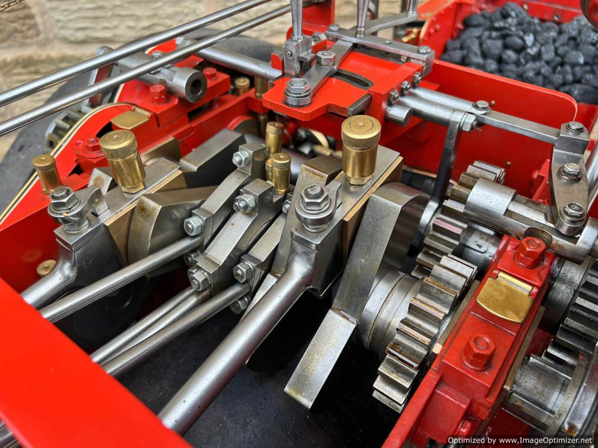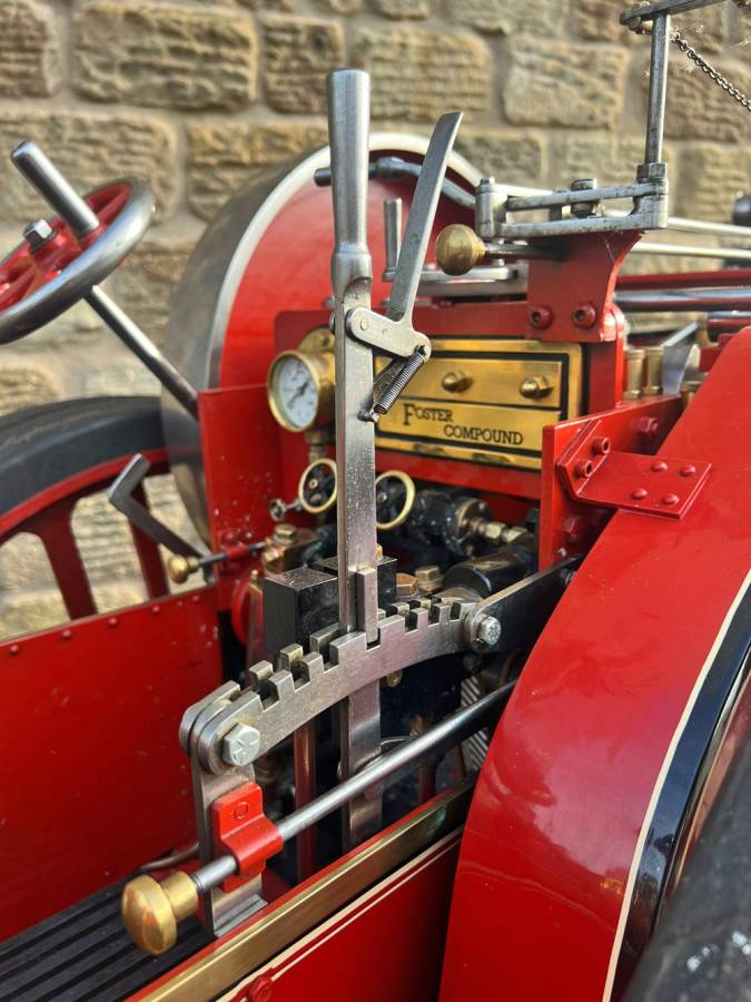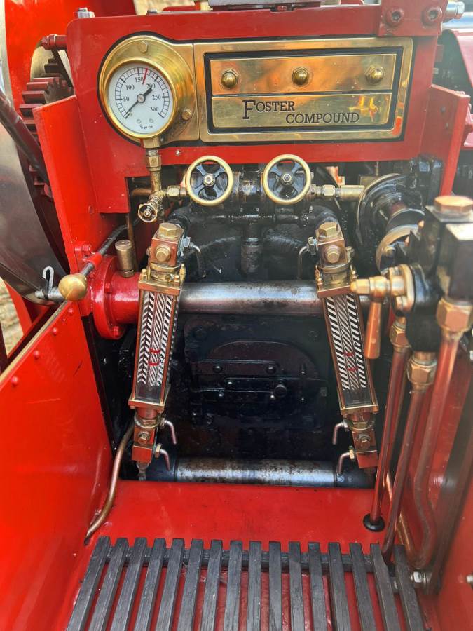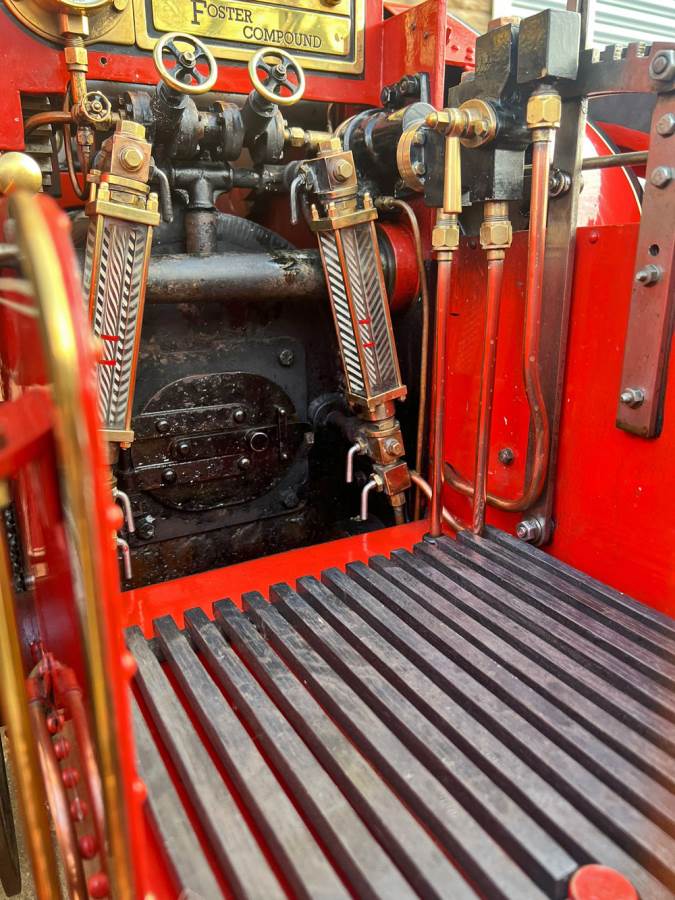 Here we have a rather special 4" Foster 7nhp Double Crank Compound three speed Road locomotive. A very rare beast this and an exceptionally well engineered one too! Beautifully machined, and dripping with finesse, the finish and tolerances are superb, with no perceptible wear and a satisfying smoothness to every slide and movement. She's a full Compound with double high 'simpling' capacity and the cylinders are 2 1/8¨ & 3 1/2¨ bore respectively with a stroke of 4 1/8¨ working at 175psi, so this is a powerful engine in any scale.