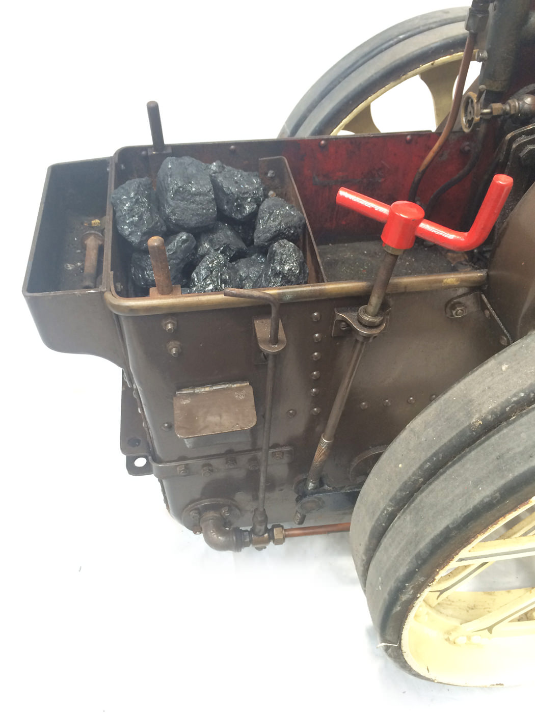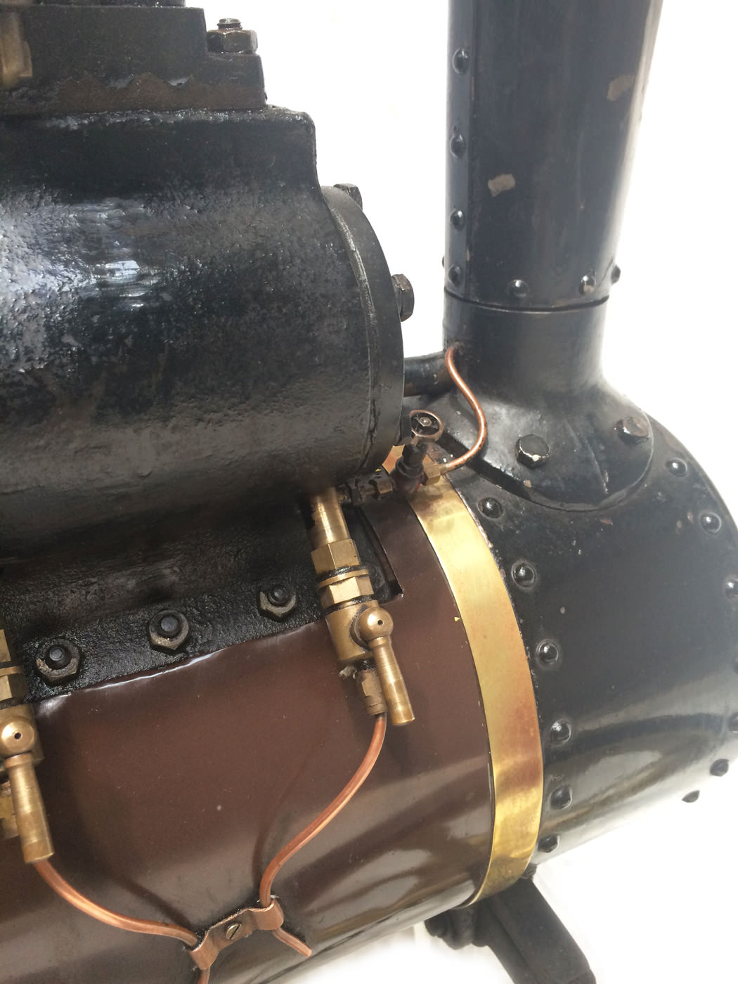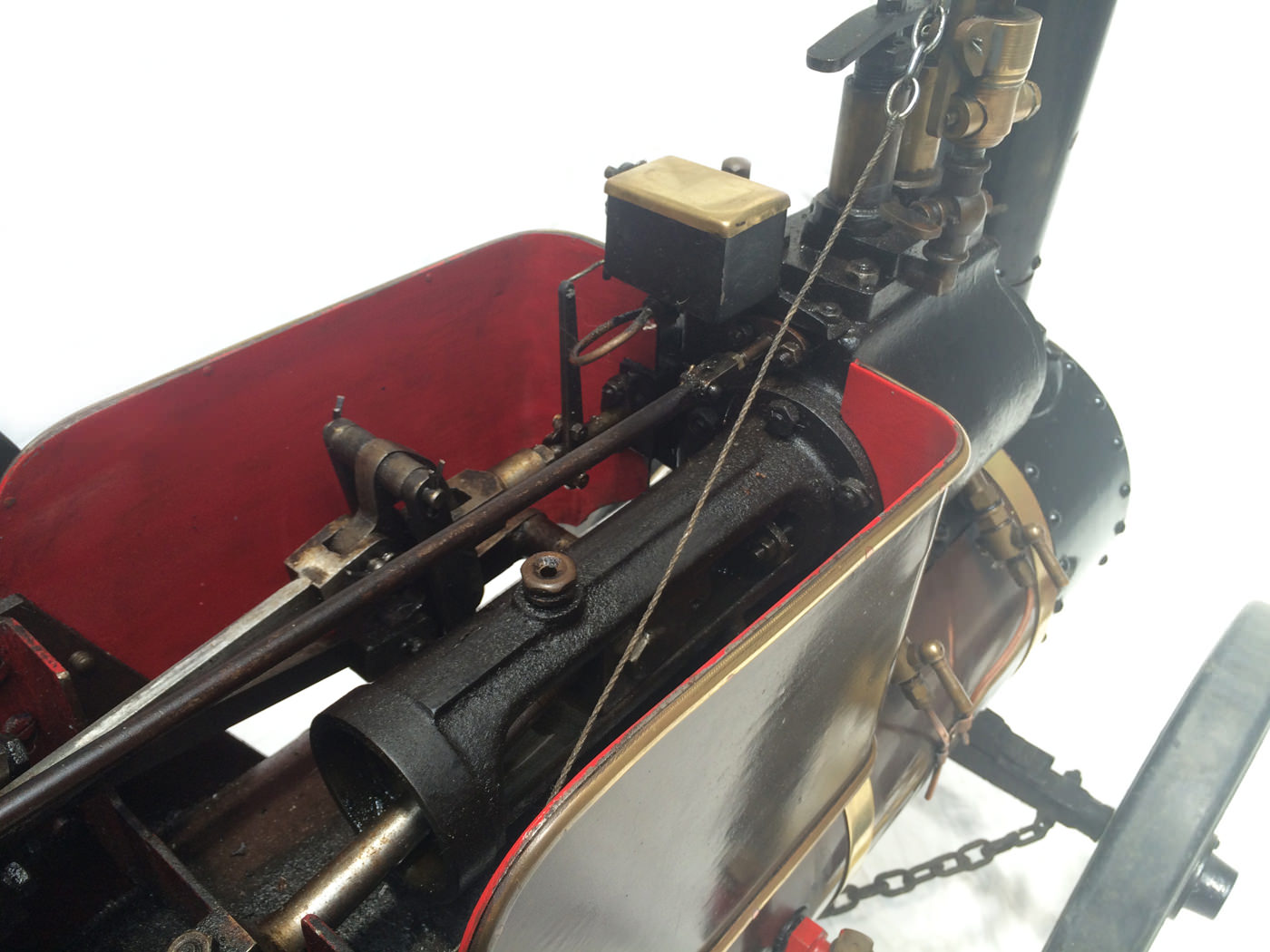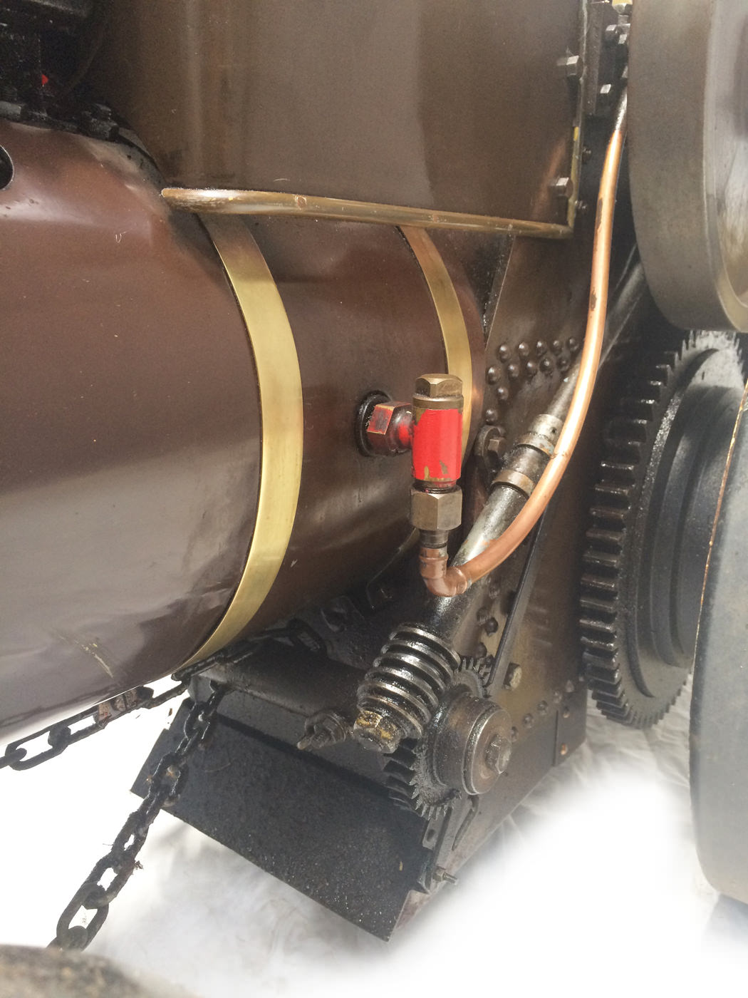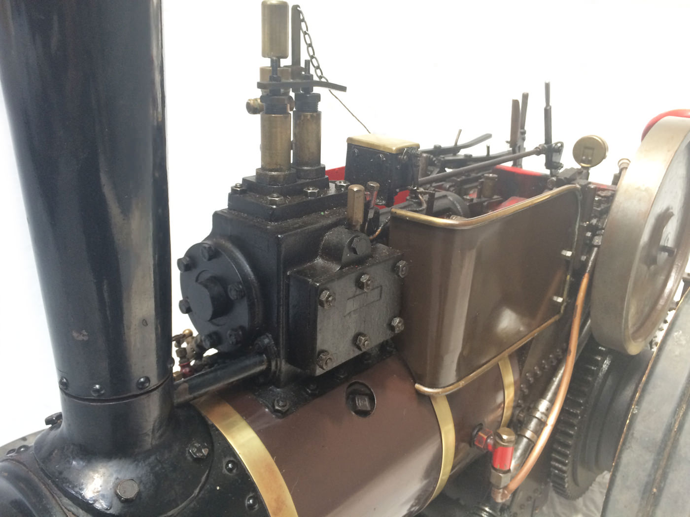 This one is in all round good mechanical condition. It's been a used engine, and as such isn't in what you might call 'exhibition' condition (!), but that said, it's certainly tidy enough and detailed enough to look the part. The boiler is steel, and it can come with a normal 2 year Northern fed hydraulic and a full annual steam cert ready to play. There is the usual crank shaft water pump with footplate mounted bypass pump and an injector. Lubrication is the normal mechanical job on the top.