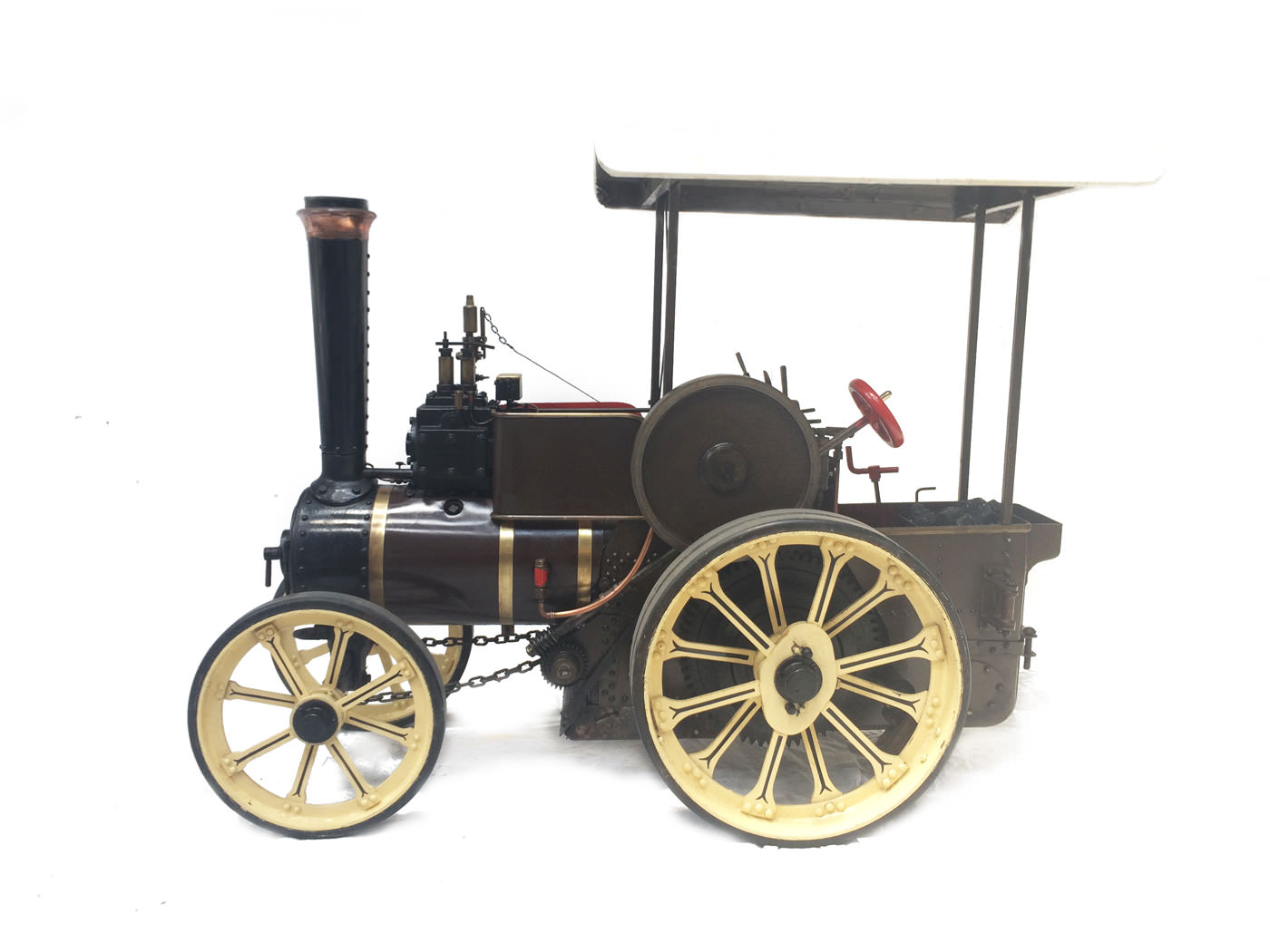 Here we have a 4" scale Ruston Proctor SD tractor. She is made to the LSM published design, and makes a nice sized model. On the small side for a 4", but bigger than the largest 3" engine, it's a manageable thing, but of a good enough size to comfortably drive around the rally field.