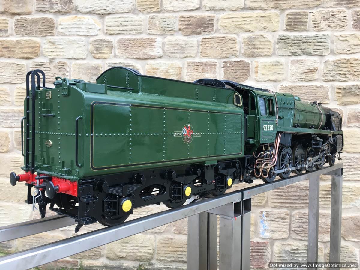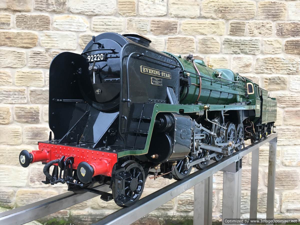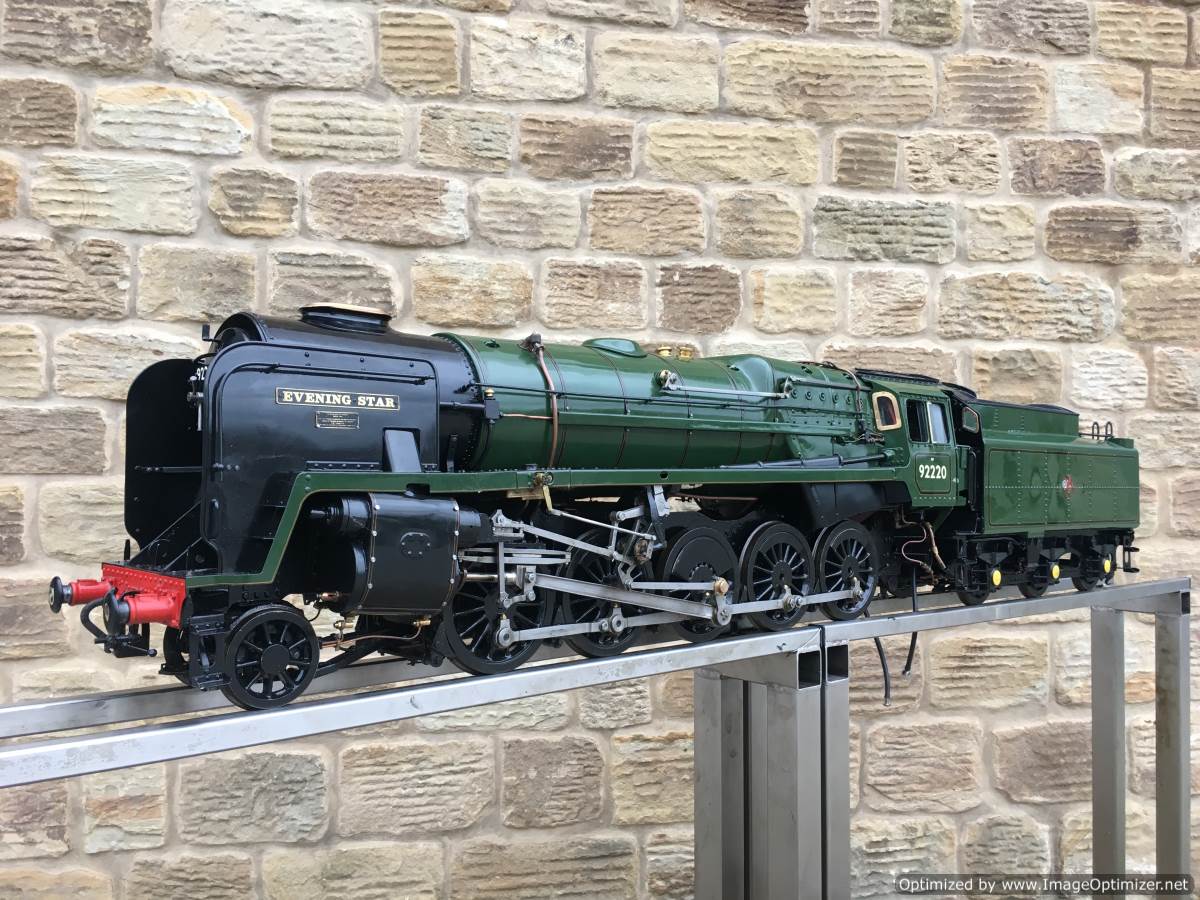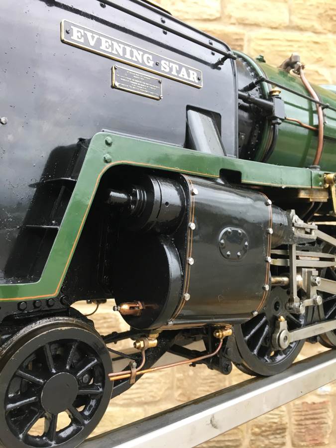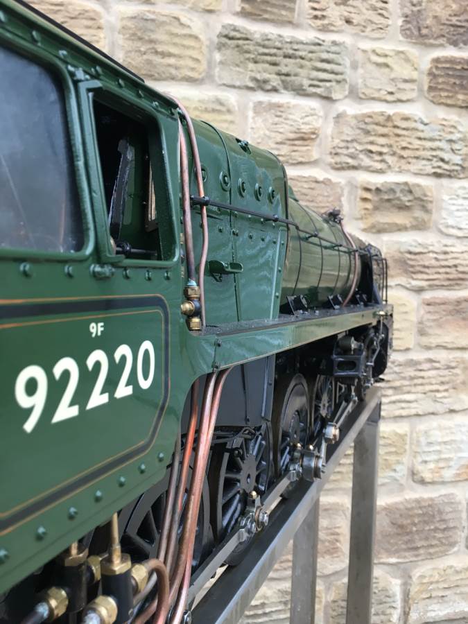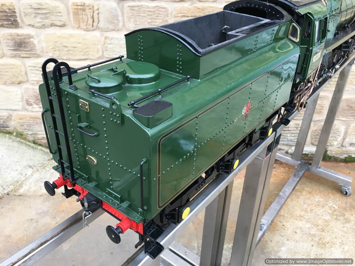 Here we have a loco to impress your friends and irritate your enemies,..... a nicely made 5" gauge BR 9F 92220 'Evening Star' made to the well detailed and respected drawings by Les Warnett. This model has seen a few different guises in it's life so far. Originally finished and run in plain black, the model was re-painted into BR green a few years ago, but it was done without stripping the model down. The black was sanded down and over painted, so the paint became a little bit on the thick side. The next owner then decided that he didn't like the shade, and so the same thing was professionally done again, making the paint even thicker! It doesn't look too bad, but there are a couple of areas where the paint has slightly reacted and wrinkled on the boiler barrel. From a few feet away though it looks nice enough!