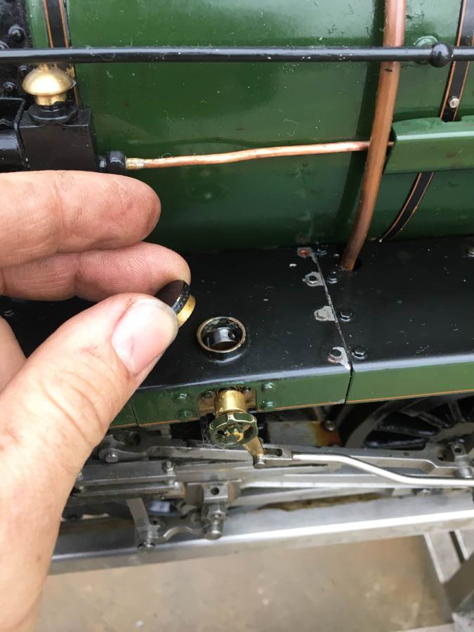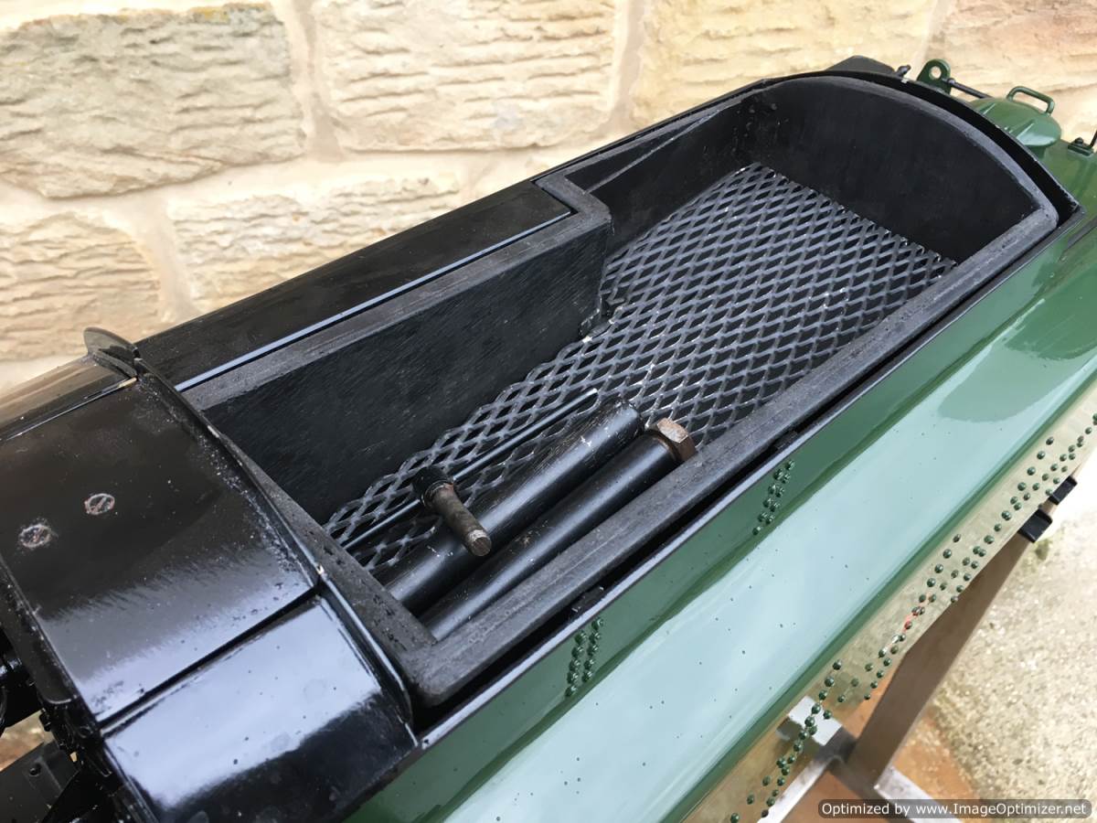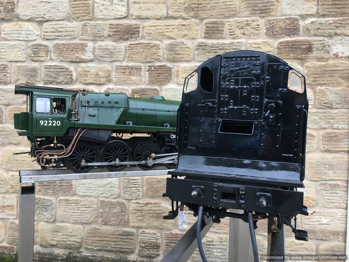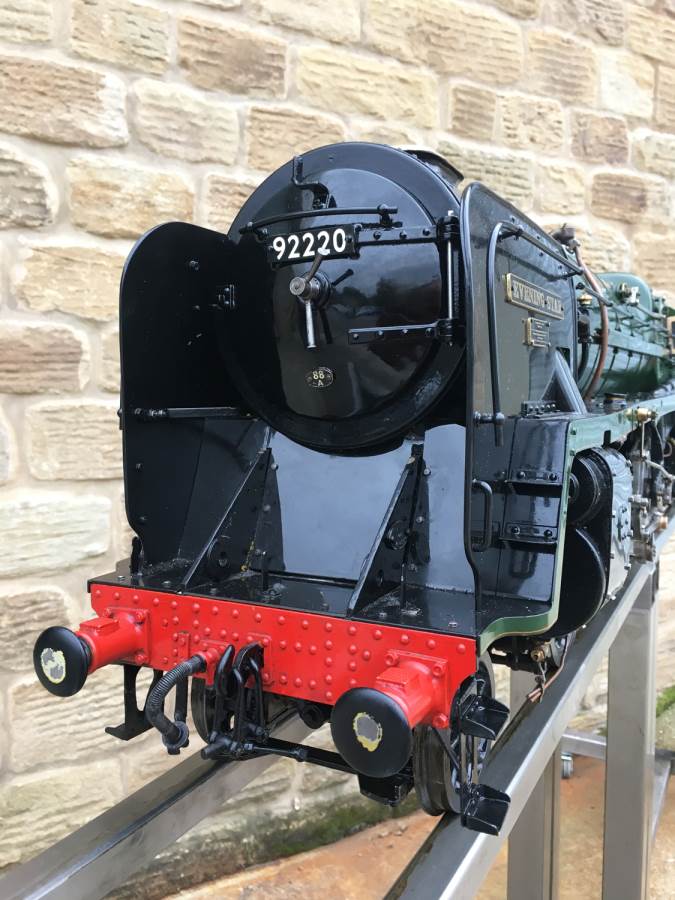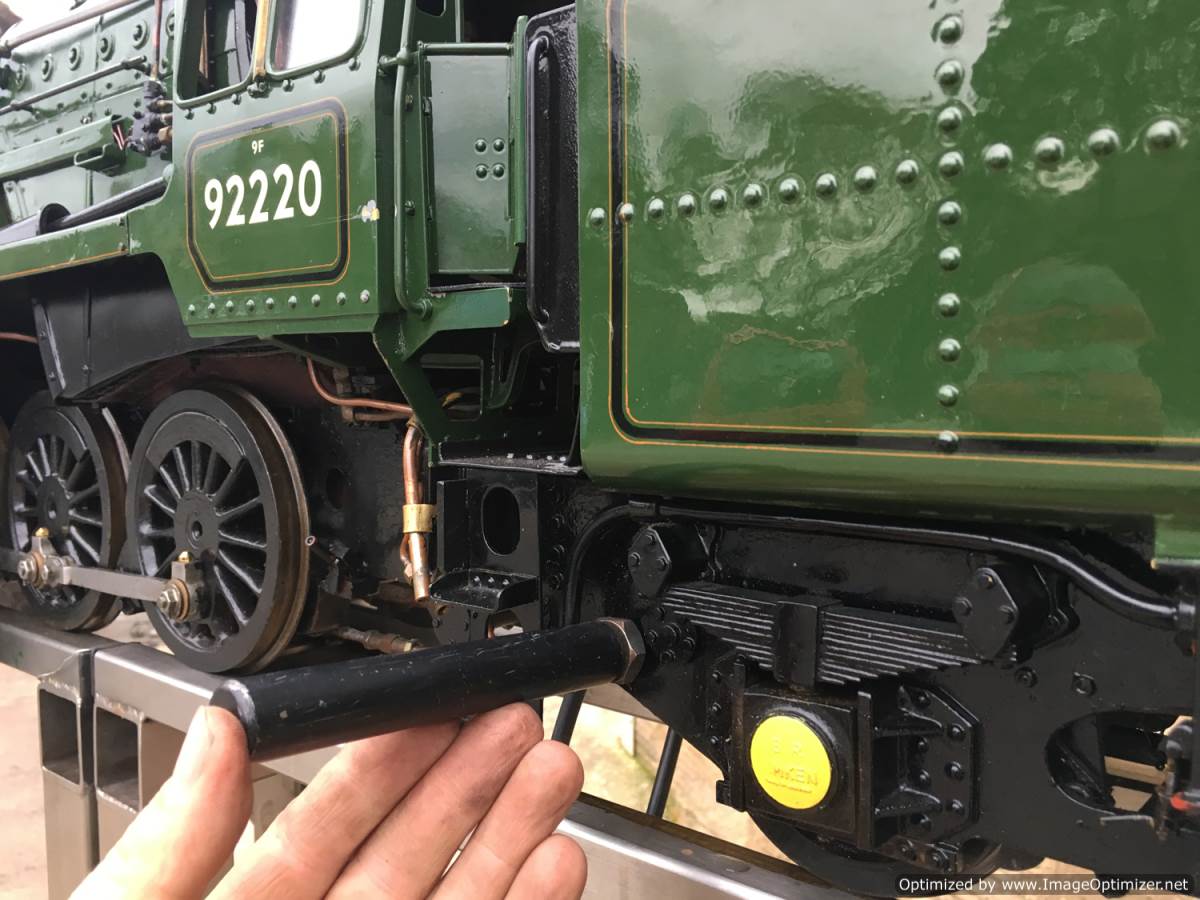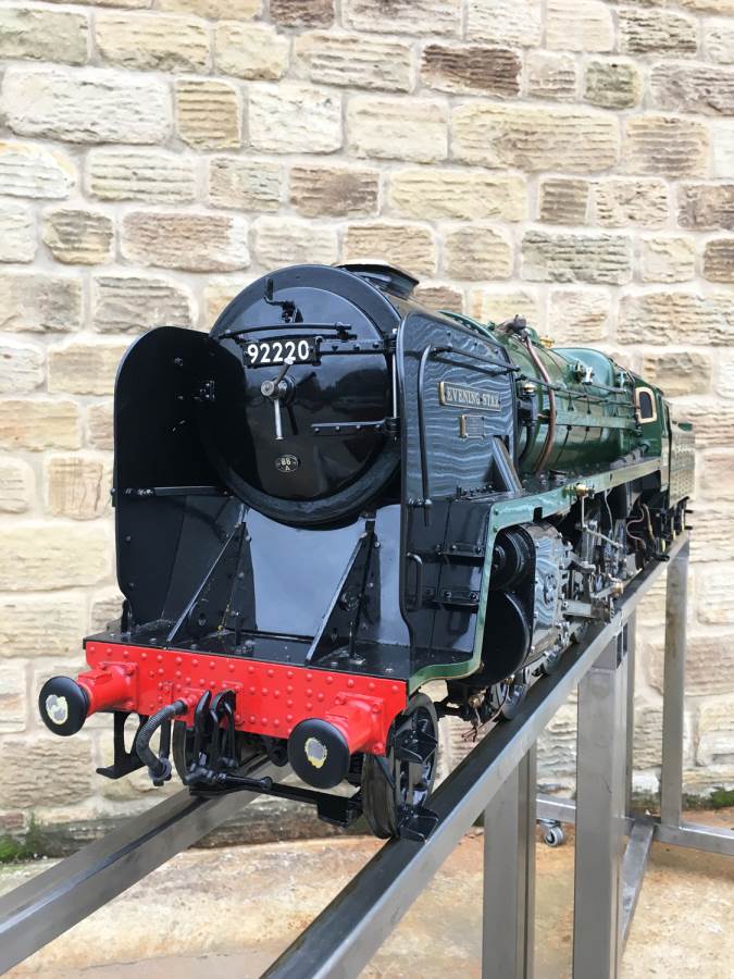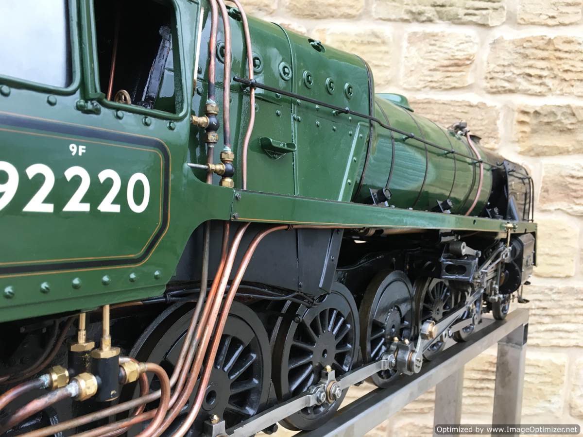 Here we have a loco to impress your friends and irritate your enemies,..... a nicely made 5" gauge BR 9F 92220 'Evening Star' made to the well detailed and respected drawings by Les Warnett. This model has seen a few different guises in it's life so far. Originally finished and run in plain black, the model was re-painted into BR green a few years ago, but it was done without stripping the model down. The black was sanded down and over painted, so the paint became a little bit on the thick side. The next owner then decided that he didn't like the shade, and so the same thing was professionally done again, making the paint even thicker! It doesn't look too bad, but there are a couple of areas where the paint has slightly reacted and wrinkled on the boiler barrel. From a few feet away though it looks nice enough!
