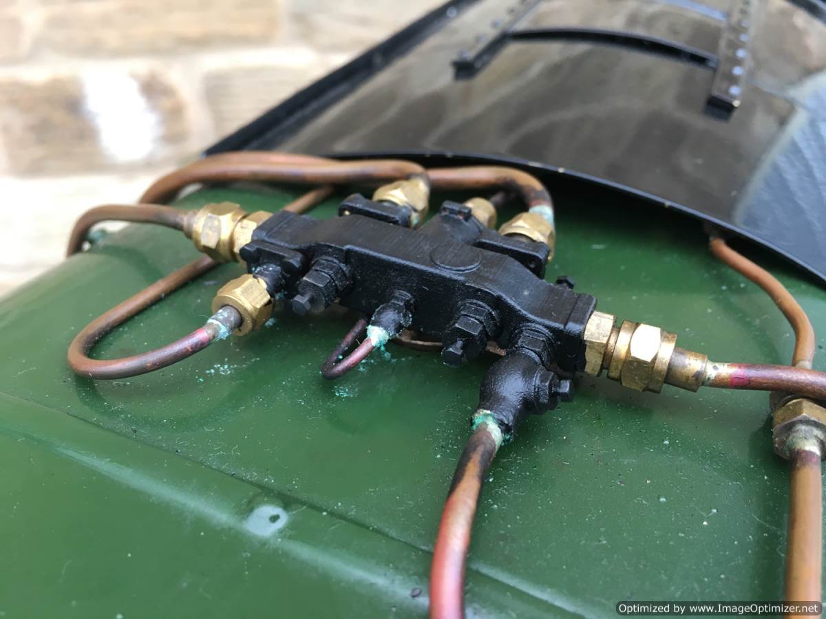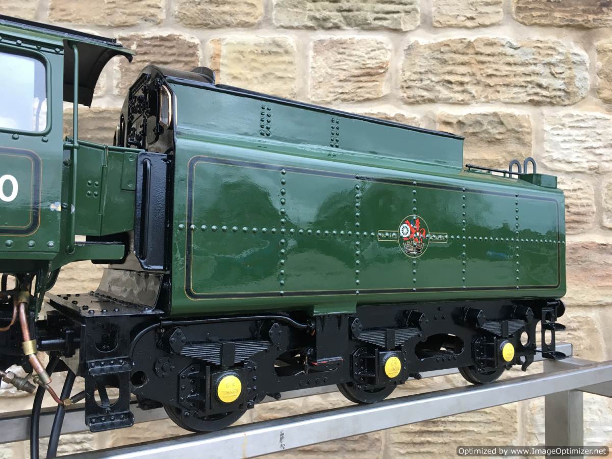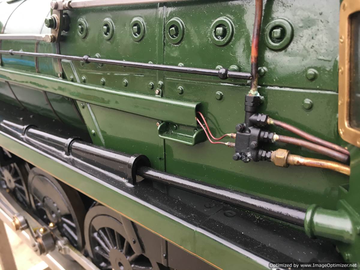 The boiler is a nice looking copper silver soldered one with no problems and of course the engine will be given a full hydraulic and steam test before she leaves. Fitted with a pair of injectors, an axle pump and bypass valve on the footplate and a hand pump in the tender. Lubrication is by two mechanical jobs hidden in the correct prototypical place just under the running boards behind the cylinders. All in all this is a very impressive and imposing locomotive and certainly a crowd pulling favourite!