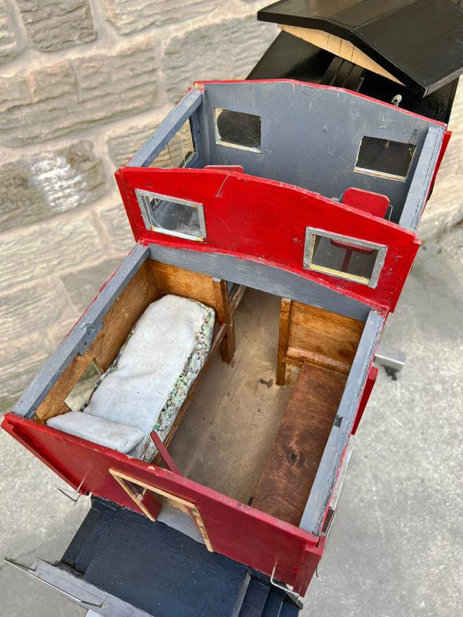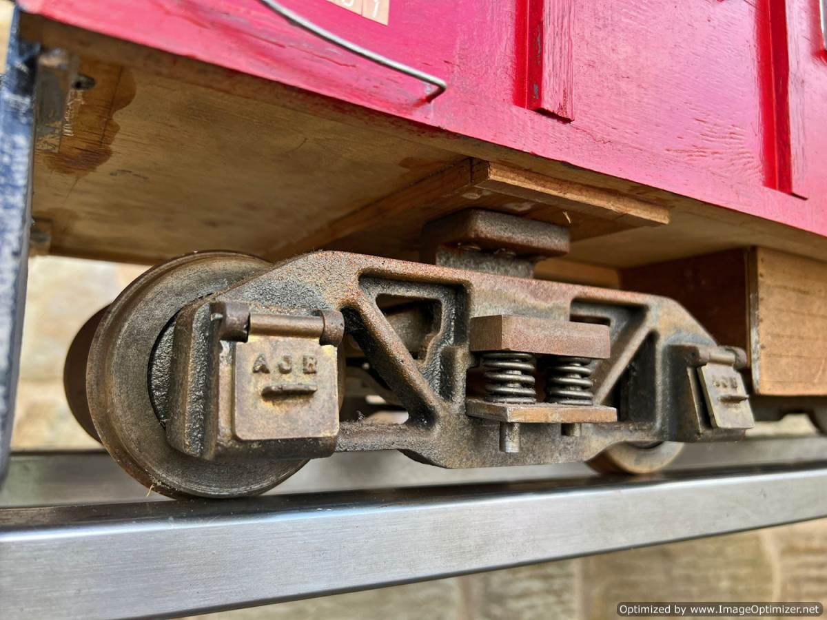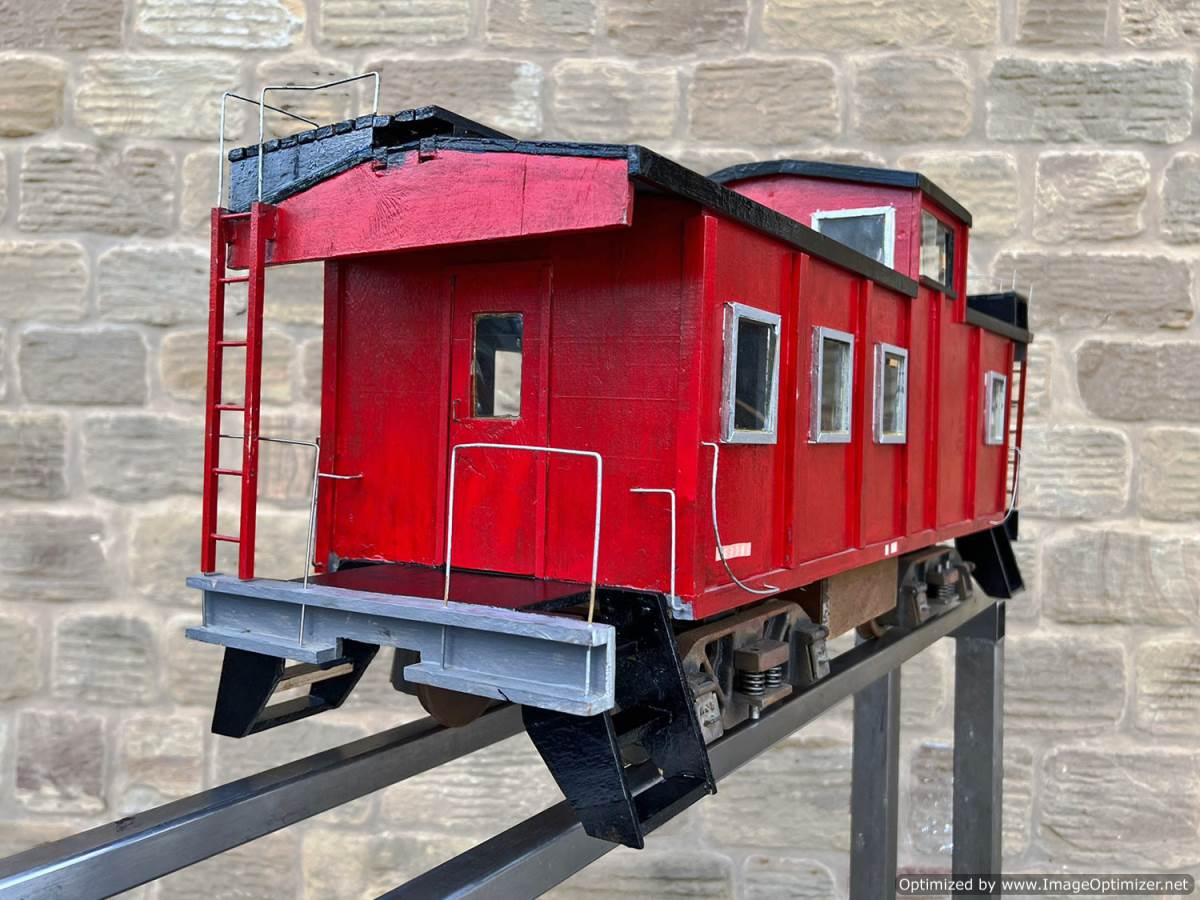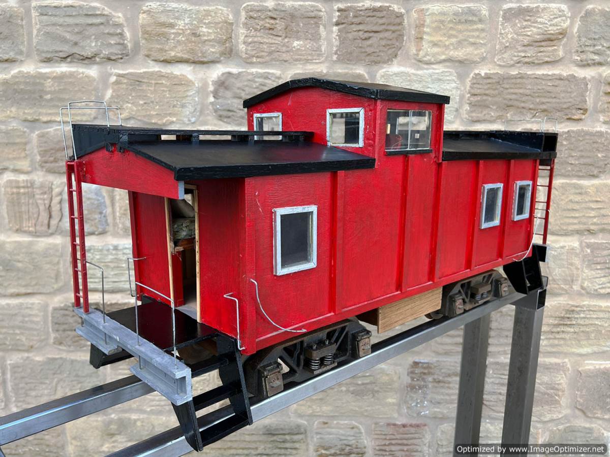 Here we have a a 5" gauge American style 'caboose' guards van. All scratch built wood construction and nicely made, with attractively detailed solidly cast bogies. All free rolling and ready to be pared with that 5" American loco!