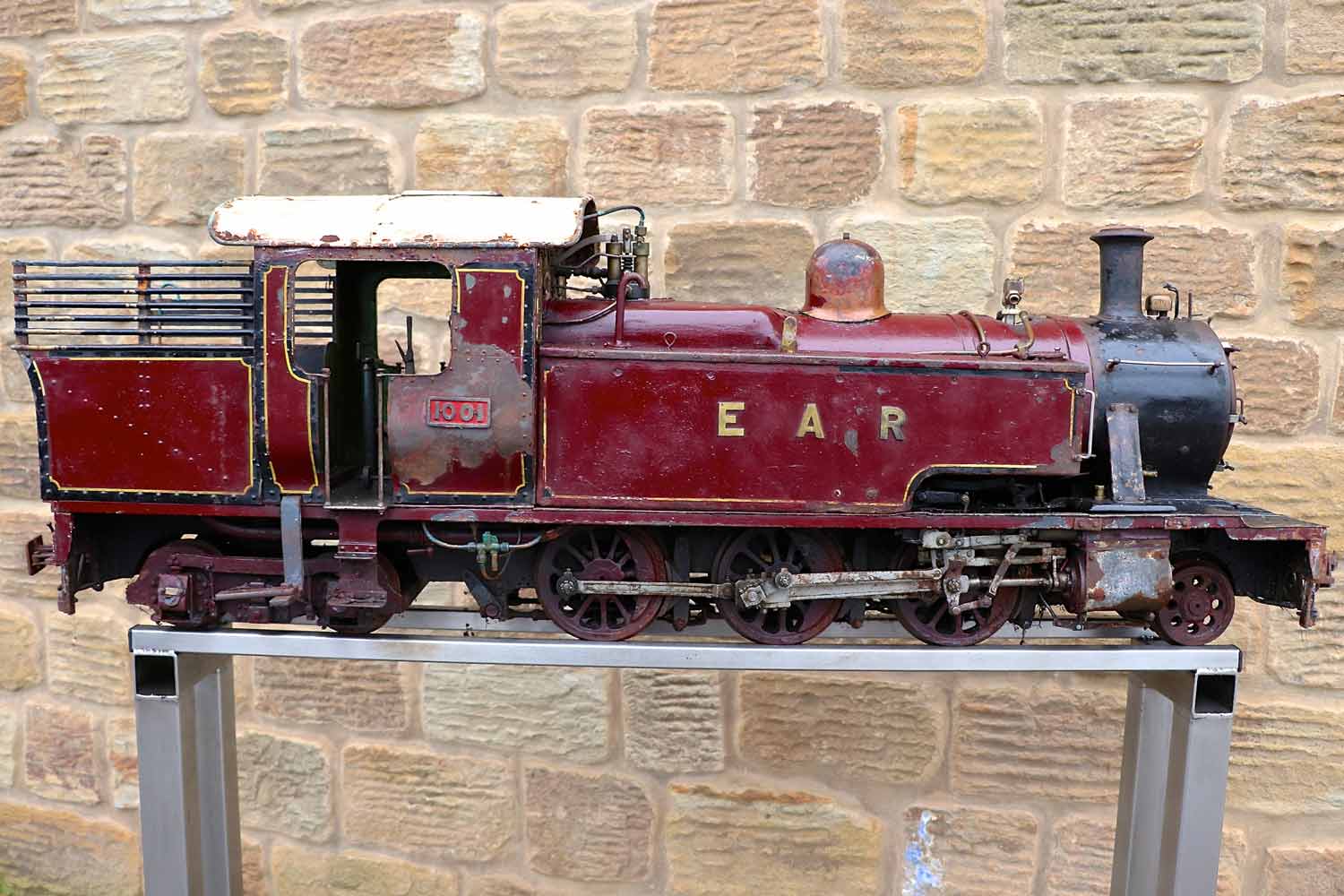 Here we have a bit of a spectacular beast,..... a 5" gauge East African Railways 10 Class 2-6-4 Tank, currently no 1001.  She is shortly to undergo a full Steam Workshop rebuild so that she's as good as new again when finished, but currently, as you can see she is in cosmetically 'barn find' condition.  You'll have to use your imagination a bit to see how good she will hopefully turn out, but do have a look at our other finished project locos for an idea of the standard of the finished product.  As you can probably tell from previous rebuilds, we won't be just stripping her down and re-building,..... part of the fun is doing the research so that we can tweak and add detail as we go to push the end product closer toward the real thing, and at this stage, if you'd like to put your name on her, then you can literally choose the name we put on her!  Essentially you can be involved in choosing and directing the final specification and detail, which makes this a genuinely unique opportunity and project.