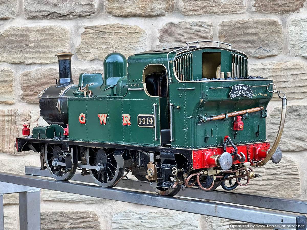 Here we have a little bit of an unlikely rarity! A 5" gauge GWR 14xx built to the Nevil Evans' 'Didcot' design. GWR 14xx models are actually one of the most common 5" gauge miniature locos out there, with Winson, Modelworks and now the Kingscale commercially made offerings prolifically manufactured. But model engineer built examples to Nevil's 'Didcot' design are really rather rare! This is the only 'running' example we've had in 13 years!
