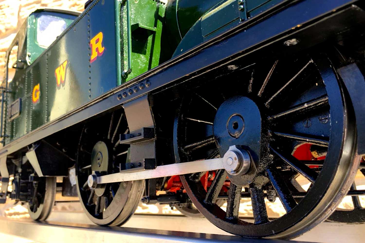 Here we have another rather nicely presented 5" gauge GWR 14xx. Built from a Winson kit in 2000, finished in 2002. We sold this a year or so ago as a brand new and untested model, so although the boiler and kit dates from 2002, the model was still brand new and unsteamed last year. Since then she's been treated by her new owner to a visit to JD Miniature Engineering for some mechanical tweaks and refinements, as well as the addition of a bit of lead to the areas that matter, so that now she is fully sorted and ready to play. She's been run a few times, and successfully since, but a bigger engine came up that tickled the owner's fancy, so she's come back to us to be offered for sale again, but this time, ready to play.