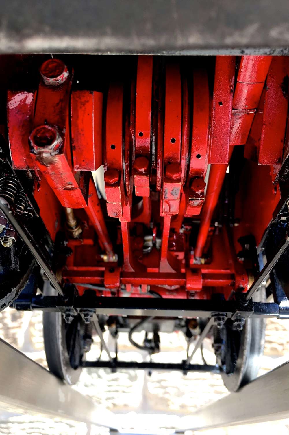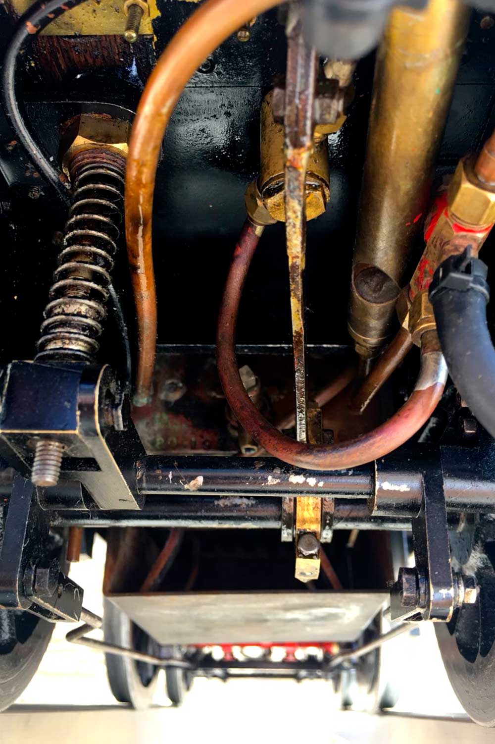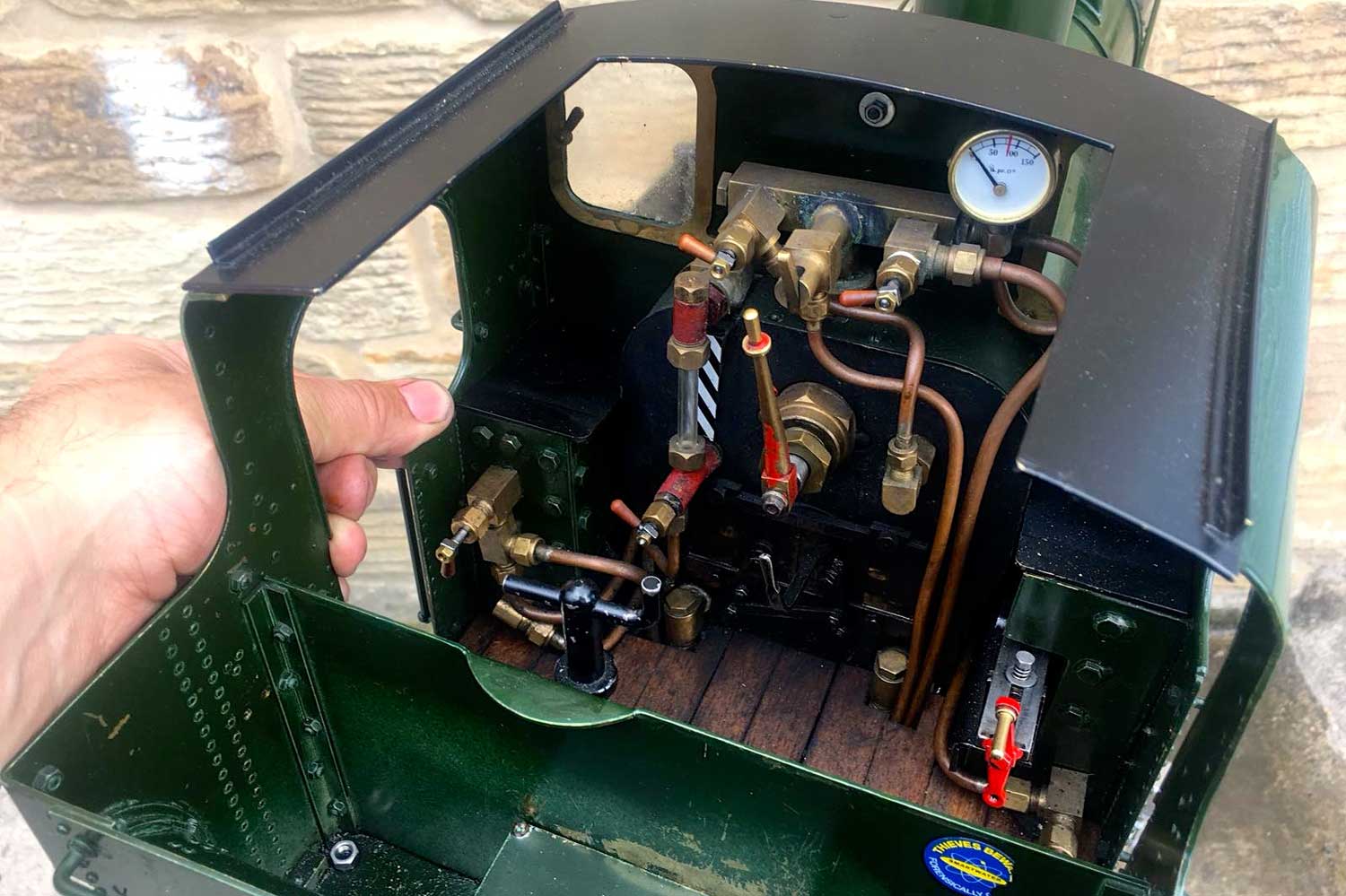 The boiler is of course professionally made, silver soldered copper and has very few steamings under it's belt. Lubrication is mechanical and hidden in the bunker as per the kit design. There is an injector, a mechanical pump with bypass valve on the footplate, and a hand pump in the tank. There are a few nice extra detailing bits, the addition of washout plugs on the boiler and firebox is a nice touch, as is the modification of the screw reverser to be actually in essence a lever one in disguise. This is a nice little GWR 14xx that ought to give you lots of pleasure trundling round your track.
