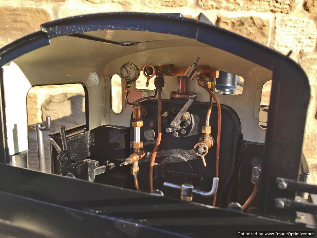 The boiler is copper and silver soldered, coming complete with the historic boiler certs as well as fresh 4 year tests and annual steam test. Lubrication is mechanical and hidden under the front running board. There is an injector, an axle pump with footplate mounted bypass and of course the hidden in the side tank.