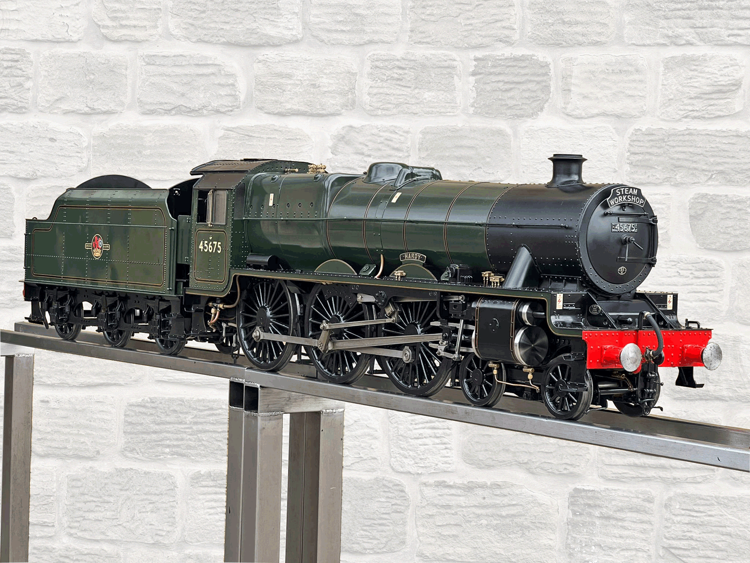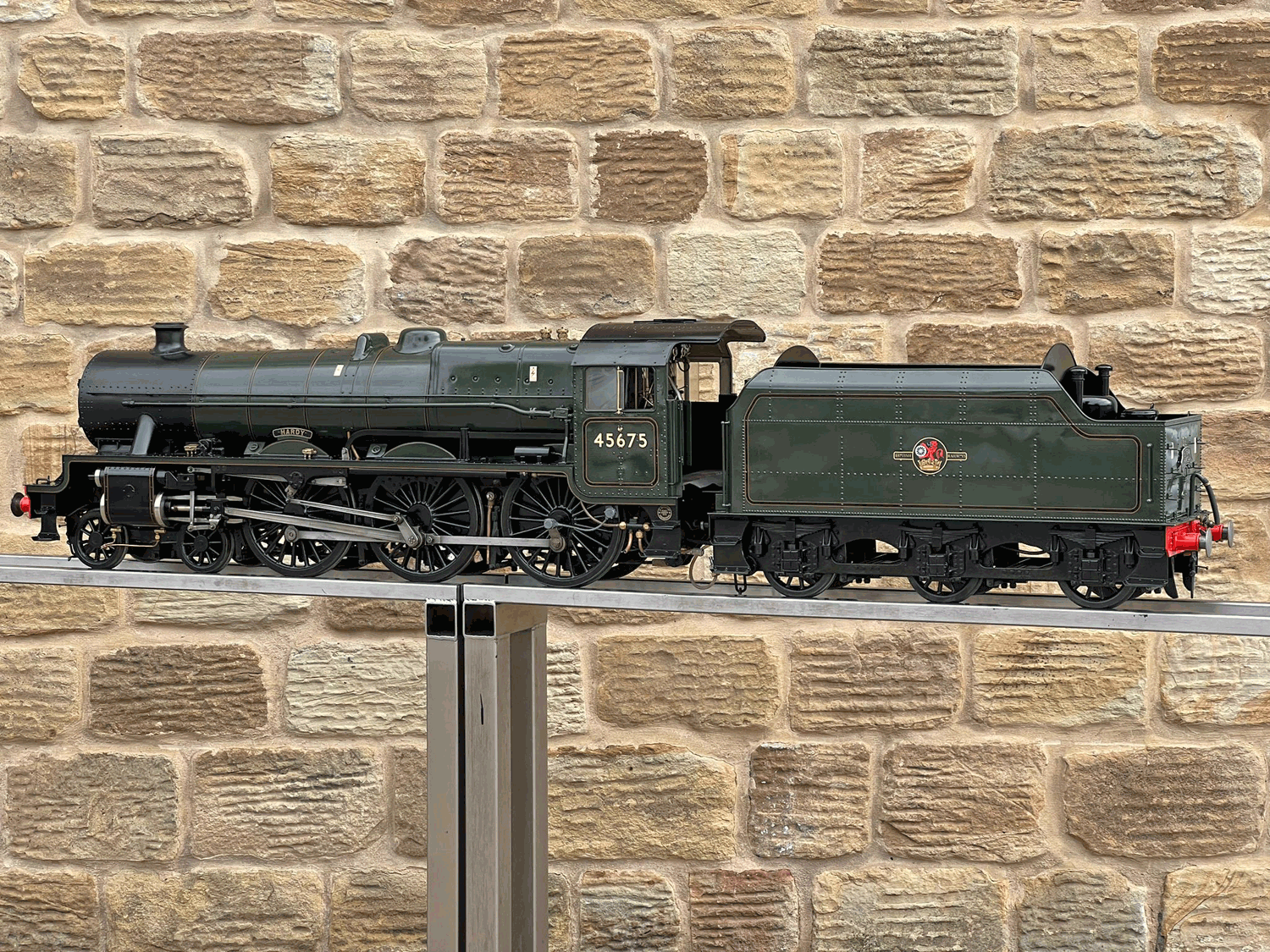 Here we have a particularly lovely 5" gauge LMS Stanier Jubilee, 'Hardy'. Although it's well known that this particular model started life many moons ago as a Modelworks Jubilee, the complete ground up rebuild by James Duncan from J D Miniature Steam is nothing short of miraculous. We strongly suspect that he threw pretty much everything except the boiler away, as you really can't see any trace of it's humble beginings,..... indeed it's a superbly finished model, with loads of lovely prototypical detailing, and it has a great reputation as a reliable runner, having been a regular performer at Gilling main line rallies.