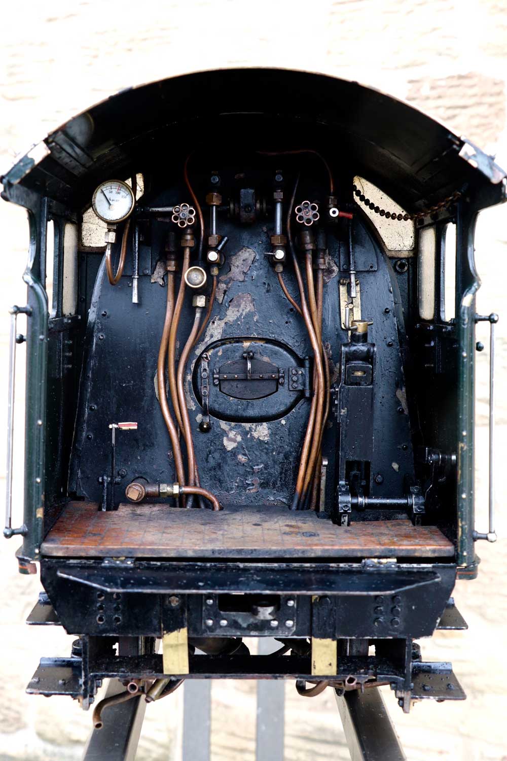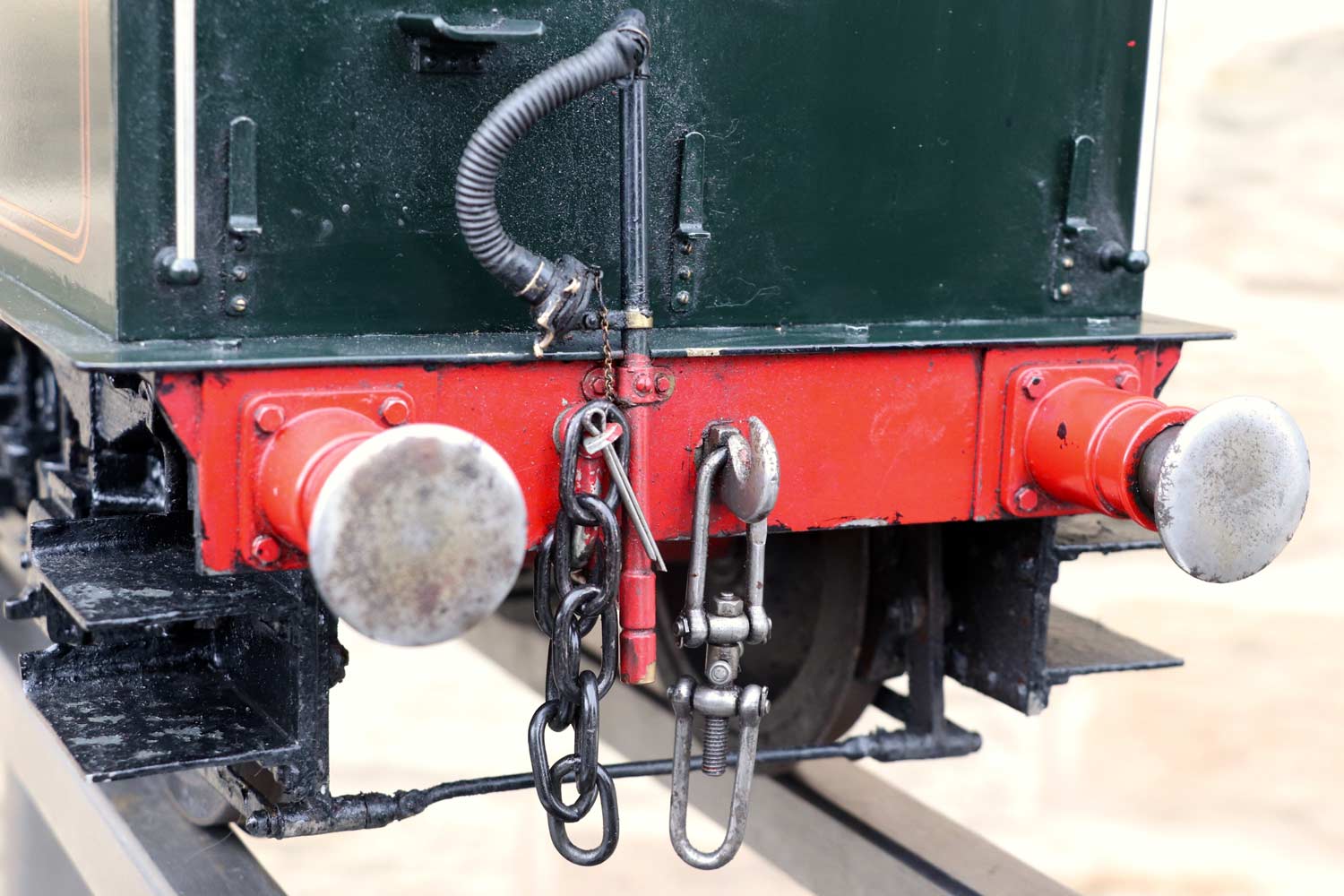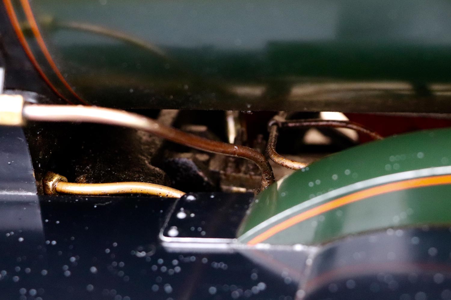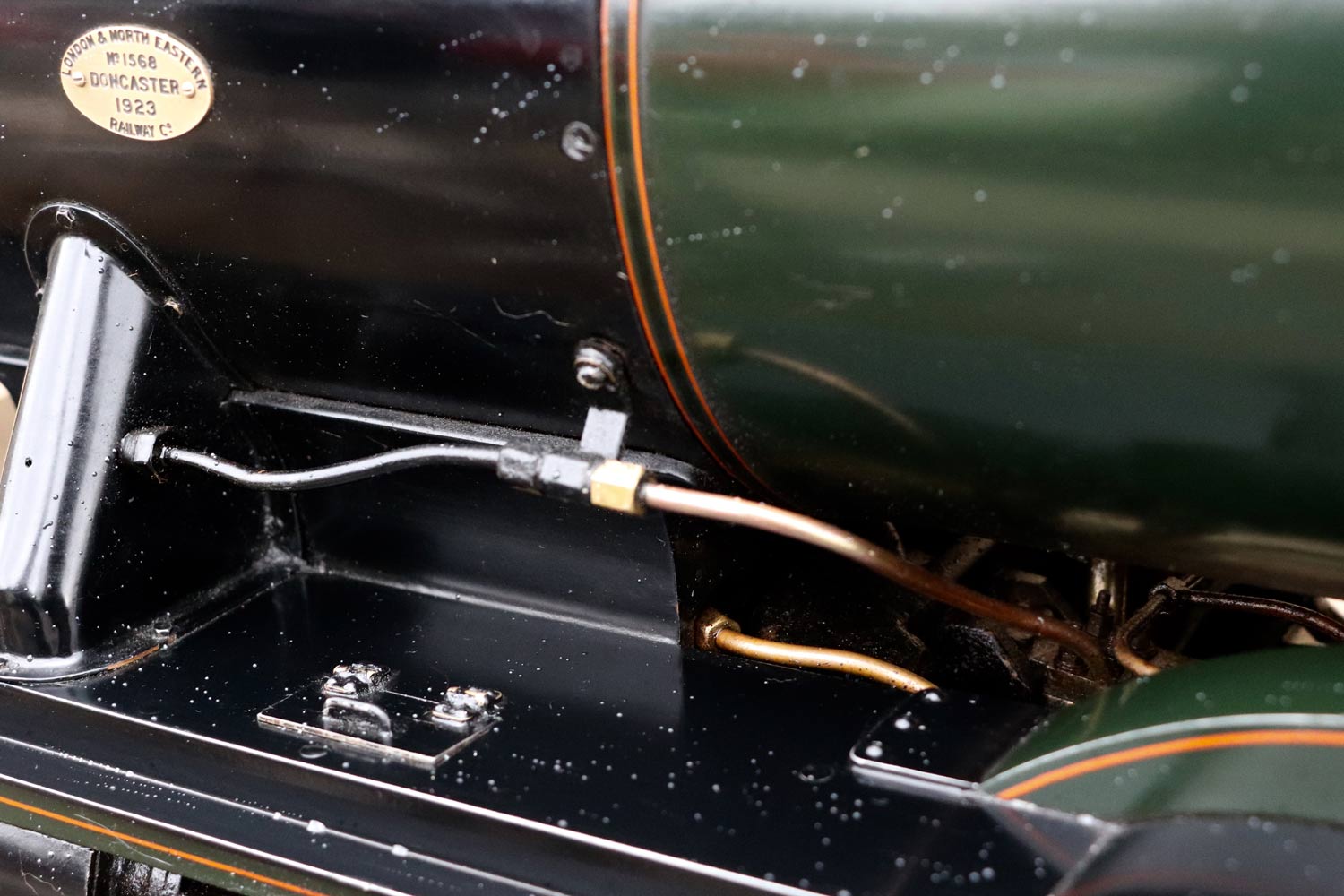 Mechanically as you've no doubt just read, she will be refreshed and ready to go, and the machining work done by the builder is lovely, crisp and neat.  The running boards have little trap doors in them for oiling the motion from the top, and they drop closed with that reassuring 'pop' that you only get with a model where the builder knew how to make things properly!  The boiler is of course copper and silver soldered, comes with a large wedge of old certificates back to the original date of construction which was 1990.  She can of course come with fresh certificates and will be tested and ready to hit the rails.