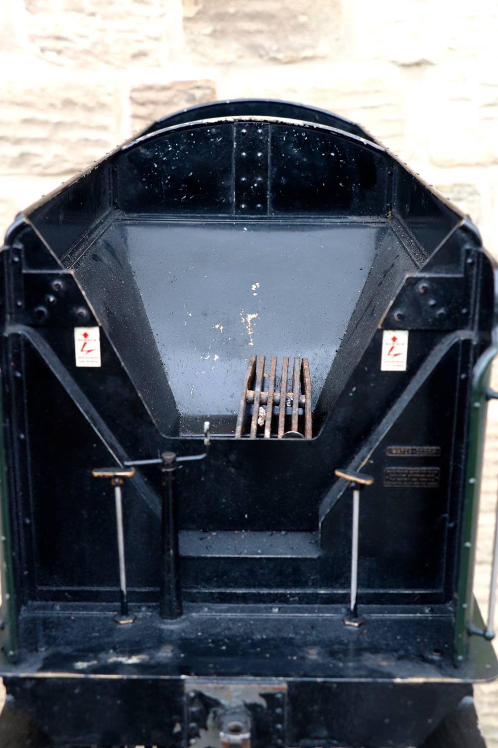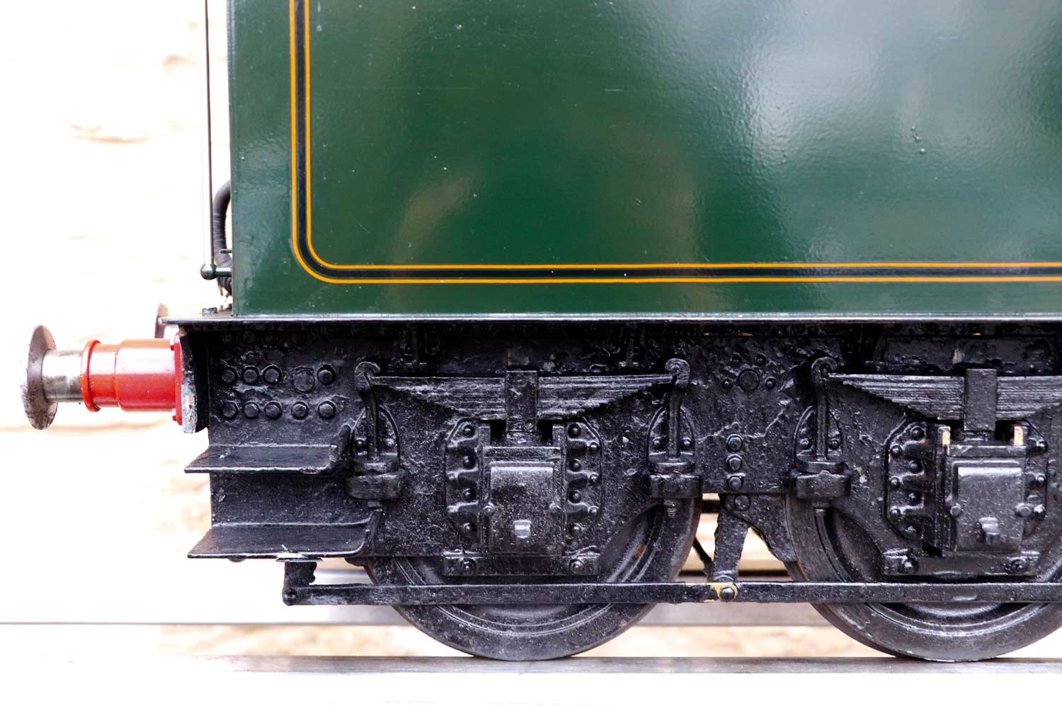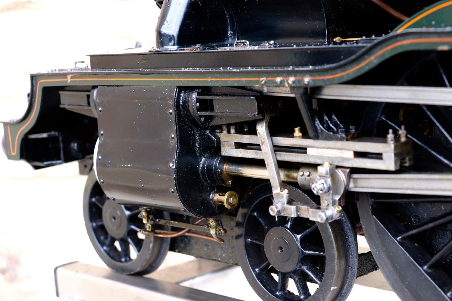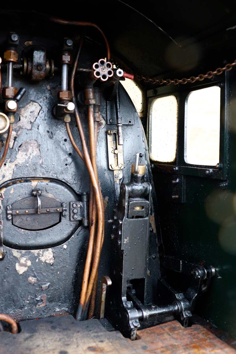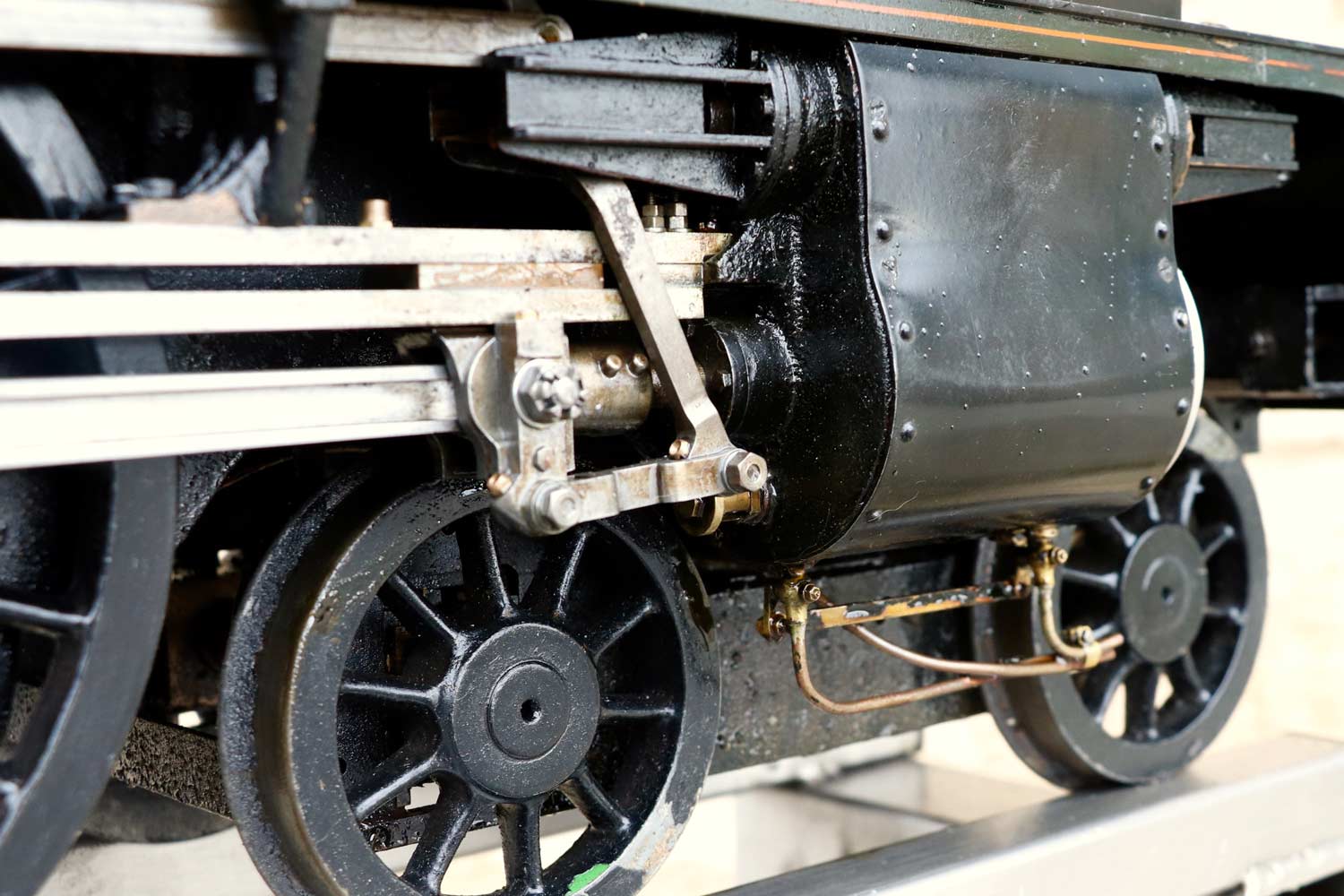 Mechanically as you've no doubt just read, she will be refreshed and ready to go, and the machining work done by the builder is lovely, crisp and neat.  The running boards have little trap doors in them for oiling the motion from the top, and they drop closed with that reassuring 'pop' that you only get with a model where the builder knew how to make things properly!  The boiler is of course copper and silver soldered, comes with a large wedge of old certificates back to the original date of construction which was 1990.  She can of course come with fresh certificates and will be tested and ready to hit the rails.