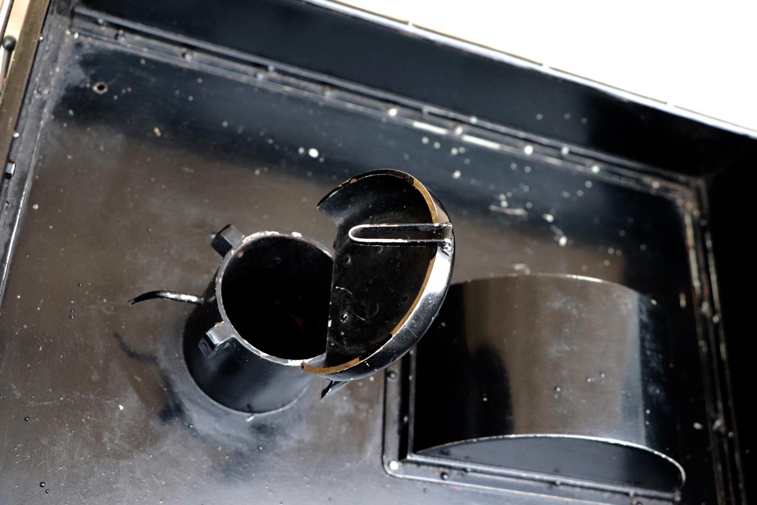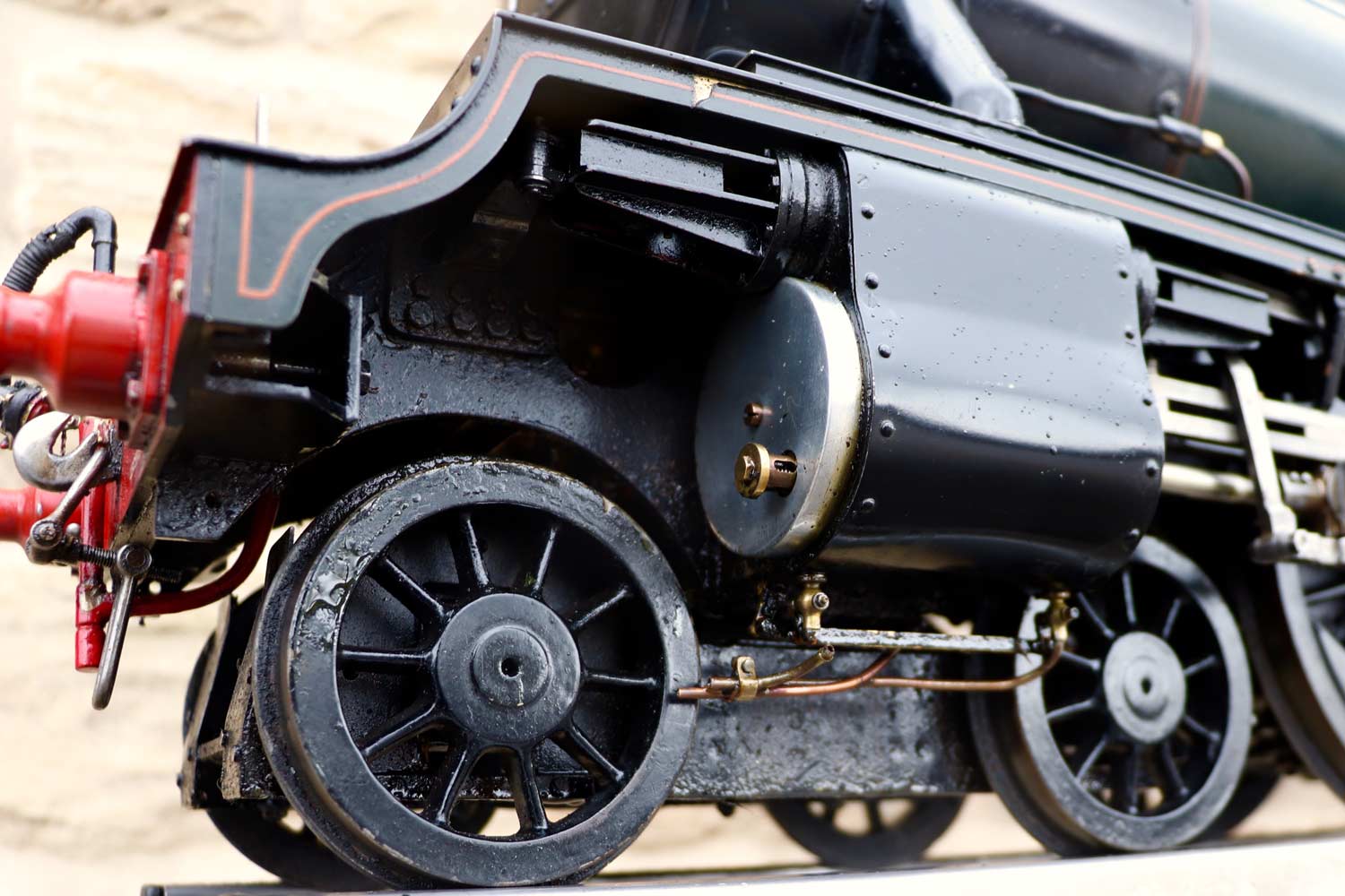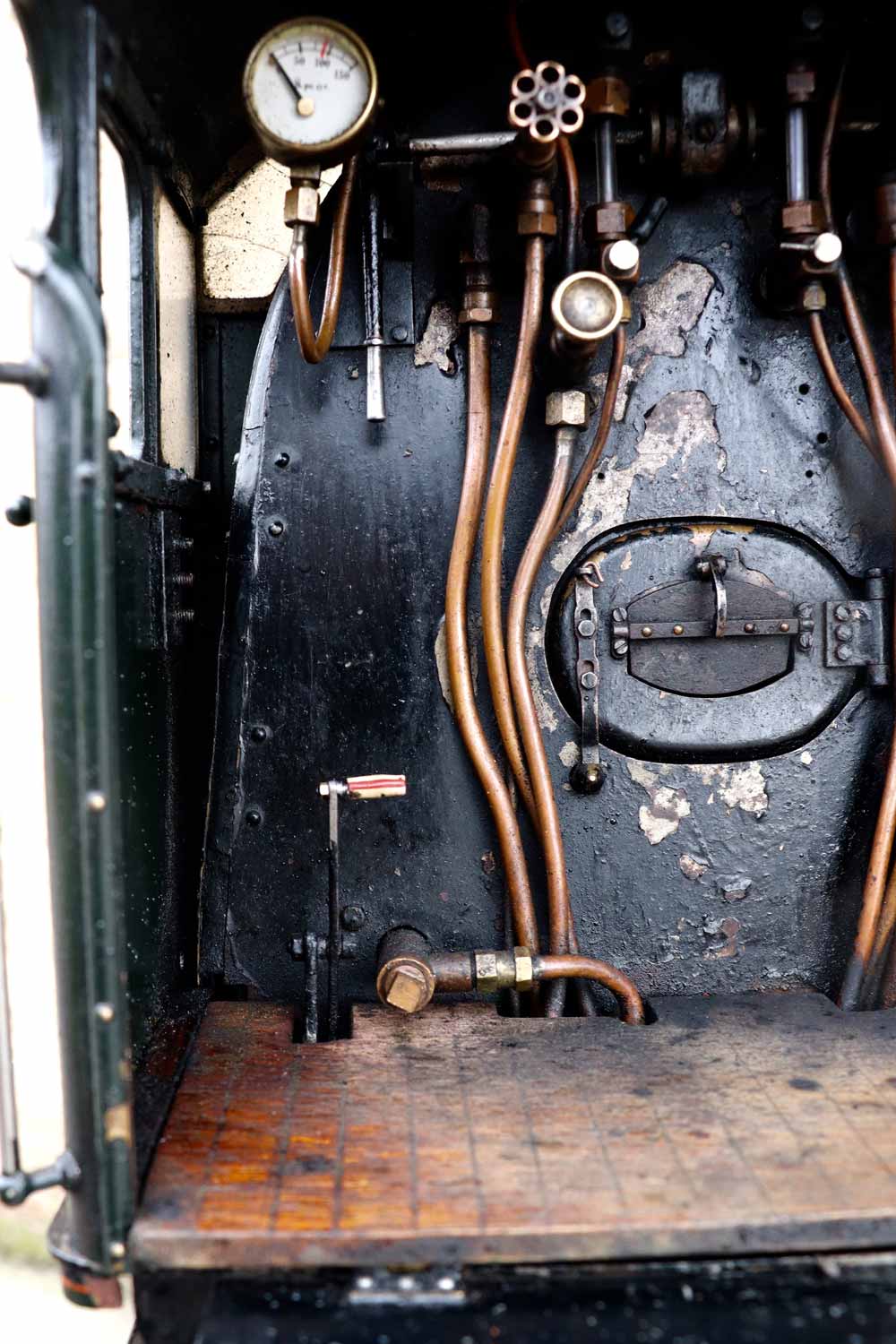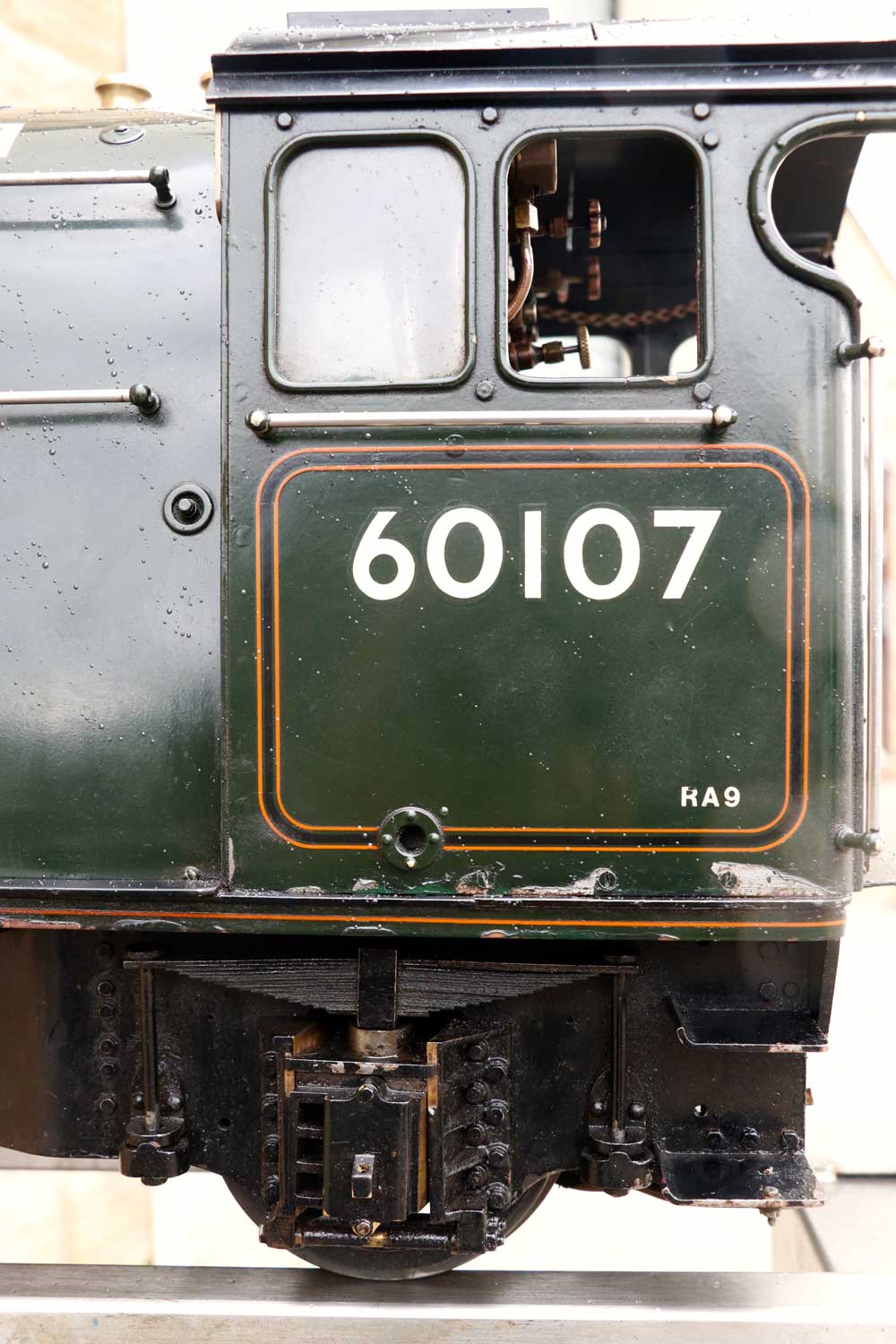 Mechanically as you've no doubt just read, she will be refreshed and ready to go, and the machining work done by the builder is lovely, crisp and neat.  The running boards have little trap doors in them for oiling the motion from the top, and they drop closed with that reassuring 'pop' that you only get with a model where the builder knew how to make things properly!  The boiler is of course copper and silver soldered, comes with a large wedge of old certificates back to the original date of construction which was 1990.  She can of course come with fresh certificates and will be tested and ready to hit the rails.