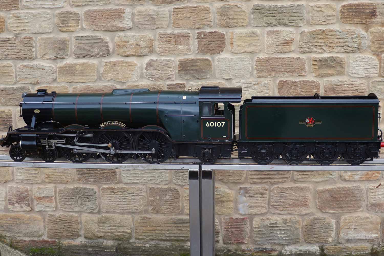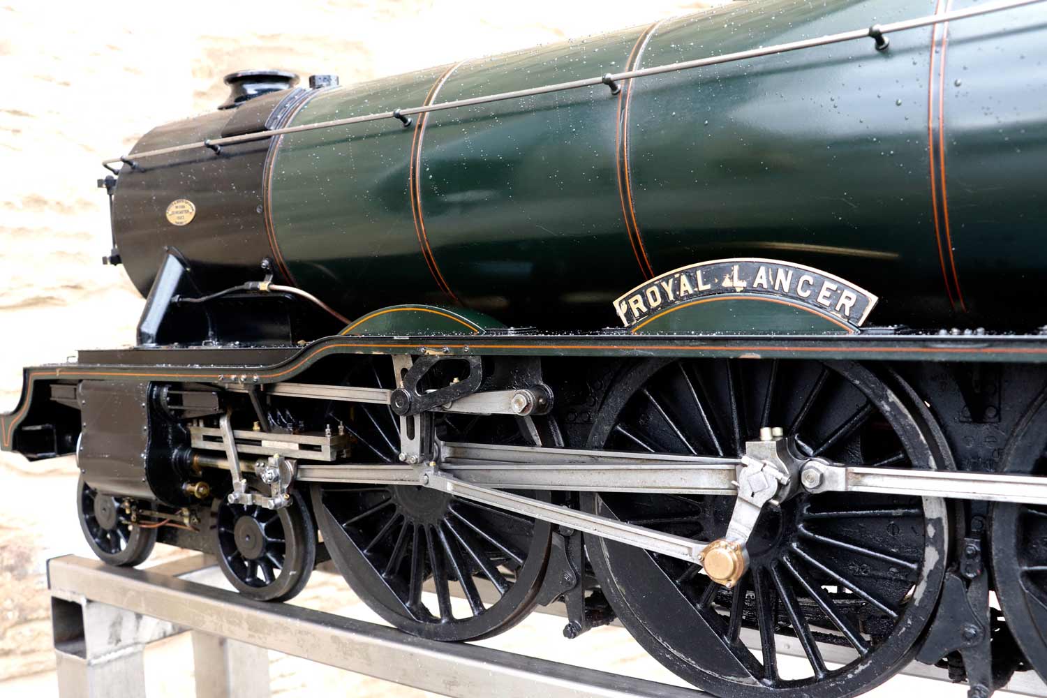 Here we have a rather handsome looking 5" gauge LNER A3, presented as no.61007 'Royal Lancer'.  This is actually a very nicely made full 3 cylinder model, with some lovely model engineering finesse in it's construction.  We've only popped up a couple of preliminary photos because she is going through the workshop for a full new set of piston and valve rings as well as a light general bottom end overhaul, at which point we will freshen up the black paint and just give her a general tidy up.  At that point we will do a full set of proper photos unless someone has already stepped forward to be her new owner of course!