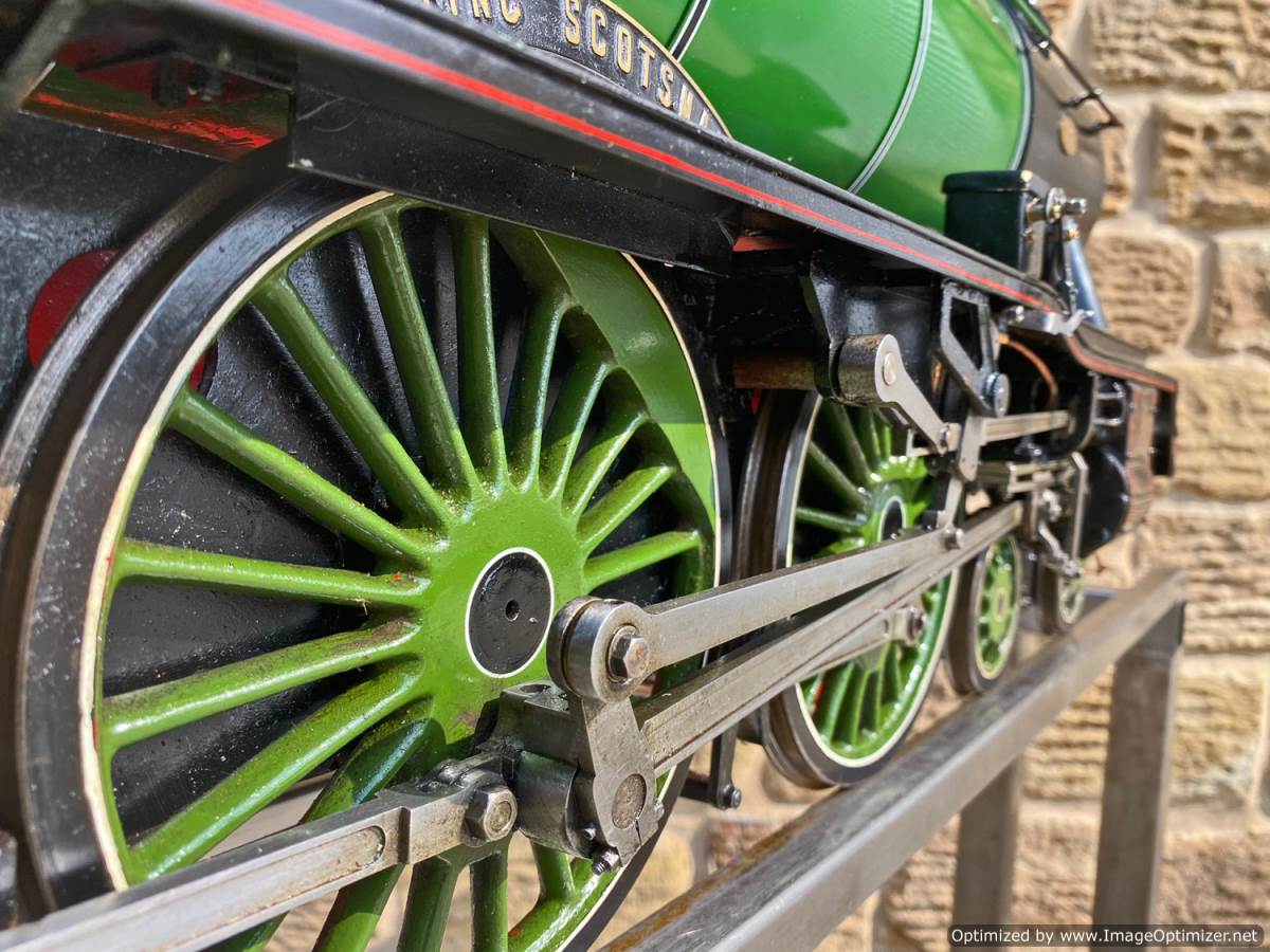 A full 3 cylinder loco of course, and she runs very smoothly and will crawl along at a very lovely slow pace. There are two injectors and a hand pump in the tender. Lubrication is mechanical and under the front as usual. The steam brakes are fitted and working as well. All in all a very tidy, and brand new model of the ever popular Scotsman.