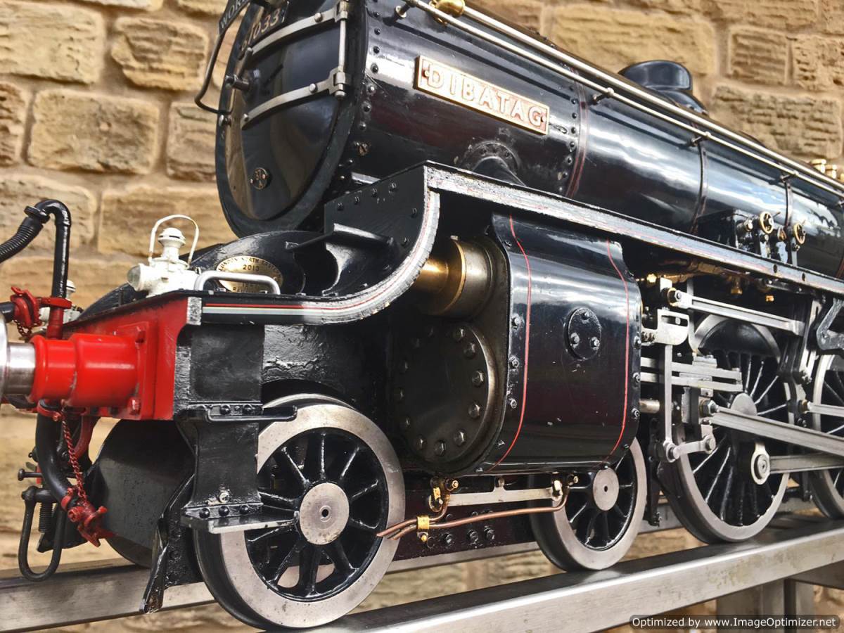 Here we have another example of Martin Evan's extremely well respected 'Springbok' design, which is of course a 5" gauge LNER B1.  In this case we have 601xx 'Roebuck'.  There's a good deal of extra detail on this model, over and above a basic Springbok.  The sand boxes, running board oil pots, nice rivet detailing as well as well machined rods, with subtle little oil reservoirs machined into the bosses.  A nicely made thing, that is above the average Springbok.  Cosmetically there are a few cracks in the paint around the smoke box, and the odd chop n scrape here and there, but nothing untoward, and all entirely consistent with a running and used model.  To that end there's also a little slop here and there in the motion, but again, nothing too major, and certainly nothing that will need any immediate attention, it's ready to play and by all accounts she ought to run very well!