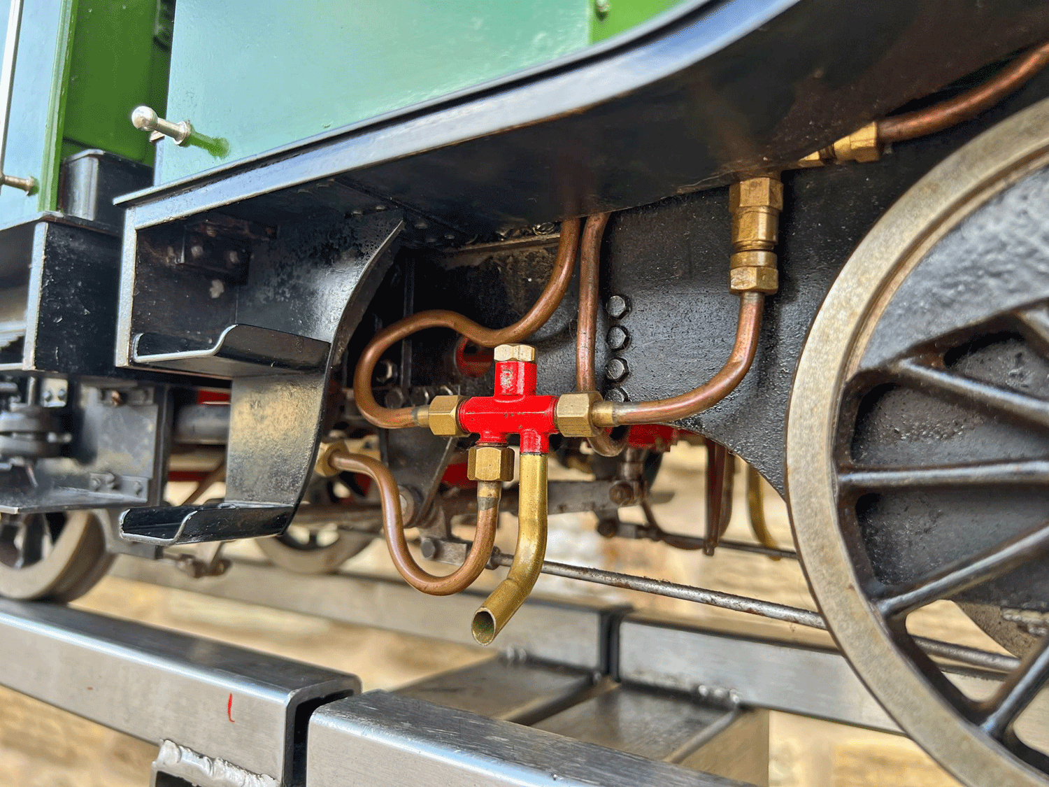 Fitted with a pair of injectors and of course the hand pump in the tender. Lubrication is mechanical and easy to access on the running board, and thought has been put into the little lubricating pots to get the oil into the axle boxes too. There's a steam brake too although they are notoriously hit and miss in the real world in this scale.