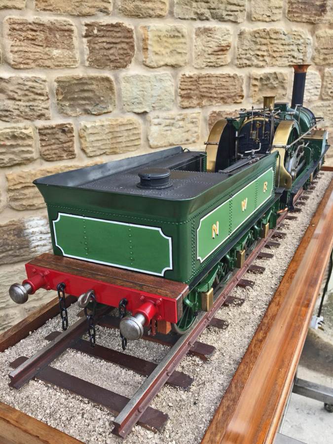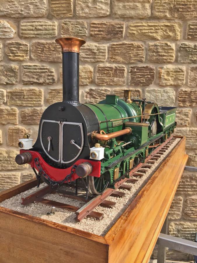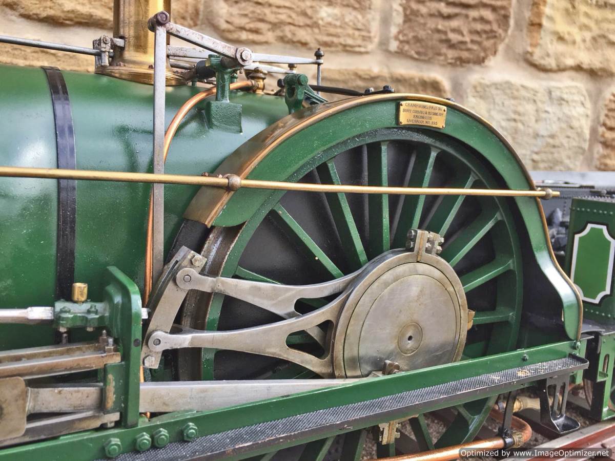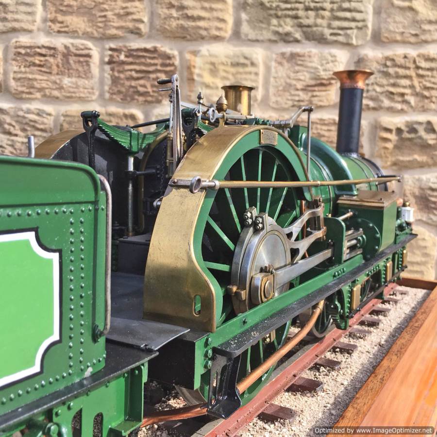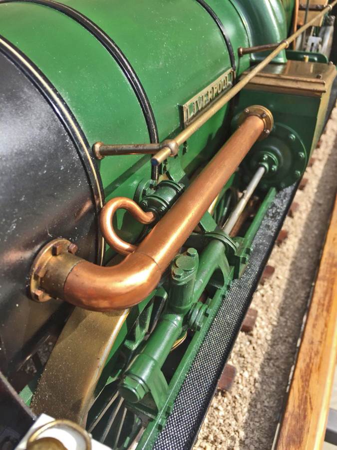 Here we have a superbly made and beautifully detailed 5" gauge Liverpool and Manchester Railway Crampton 'Liverpool'. Scratch built to the original full size loco design rather than the published and simplified model engineering design. Although mechanically she is built essentially as a working model, the boiler is not real, the backhead and smoke box details and fittings also being modelled for display. The wooden base is fitted with an electric motor so the driving wheel can be made to spin with the switch on the end of the display plinth. If we had more time here in the works we would have been putting a boiler on this one and turning her into a runner. The detail is so nicely done it is a shame that we can't just throw a fire in it! That said, as a beautiful display model it is a very worthy model to grace any mantlepiece!