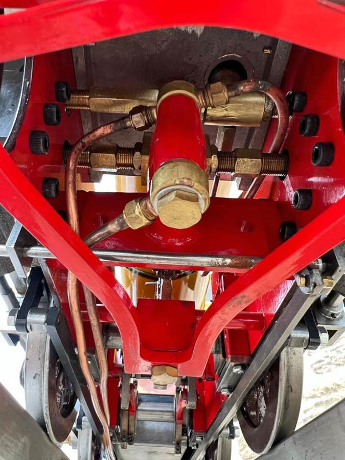 Fitted with the usual injector, axle pump with footplate mounted bypass valve and of course the hand pump in the tender. Lubrication is mechanical and in the usual Polly, easily accessible place on the running board. A very tidy, new model, that we can easily commission for you should you wish to run it rather than simply have a clean un-steamed loco.