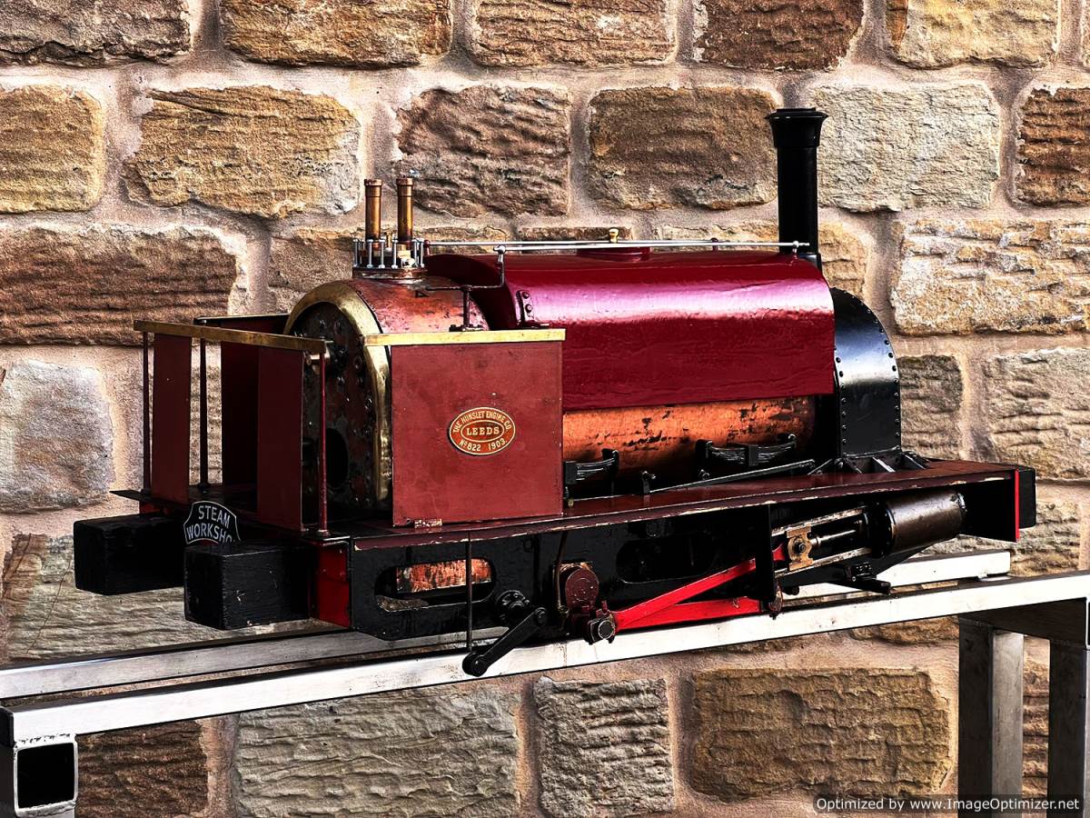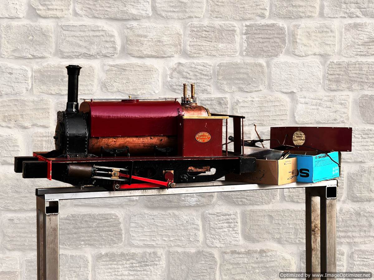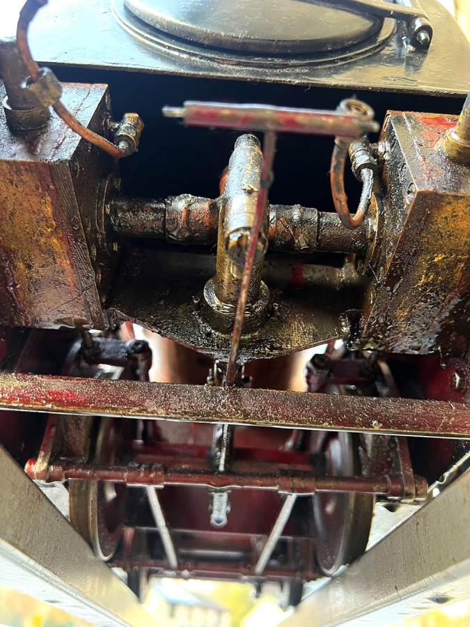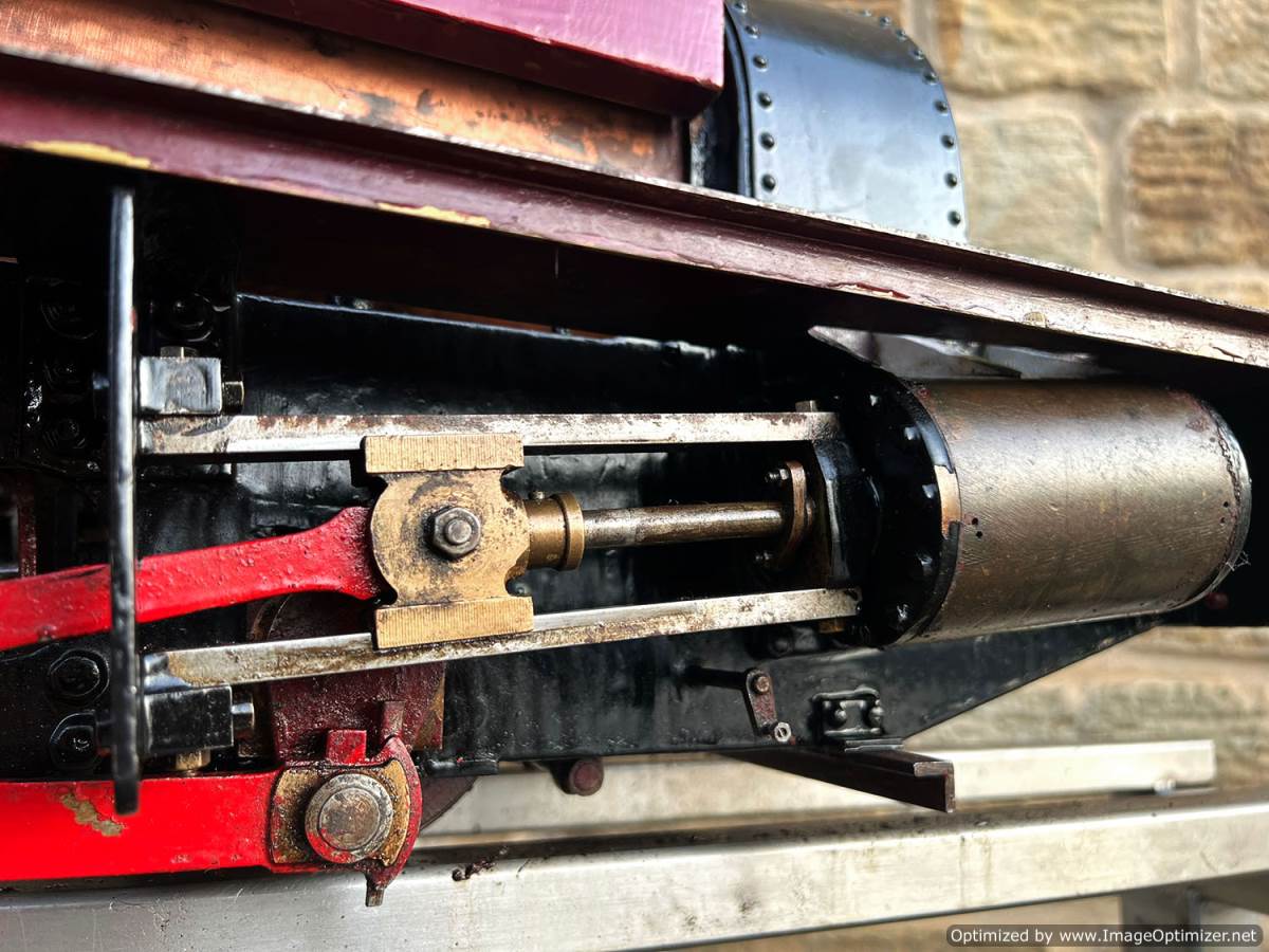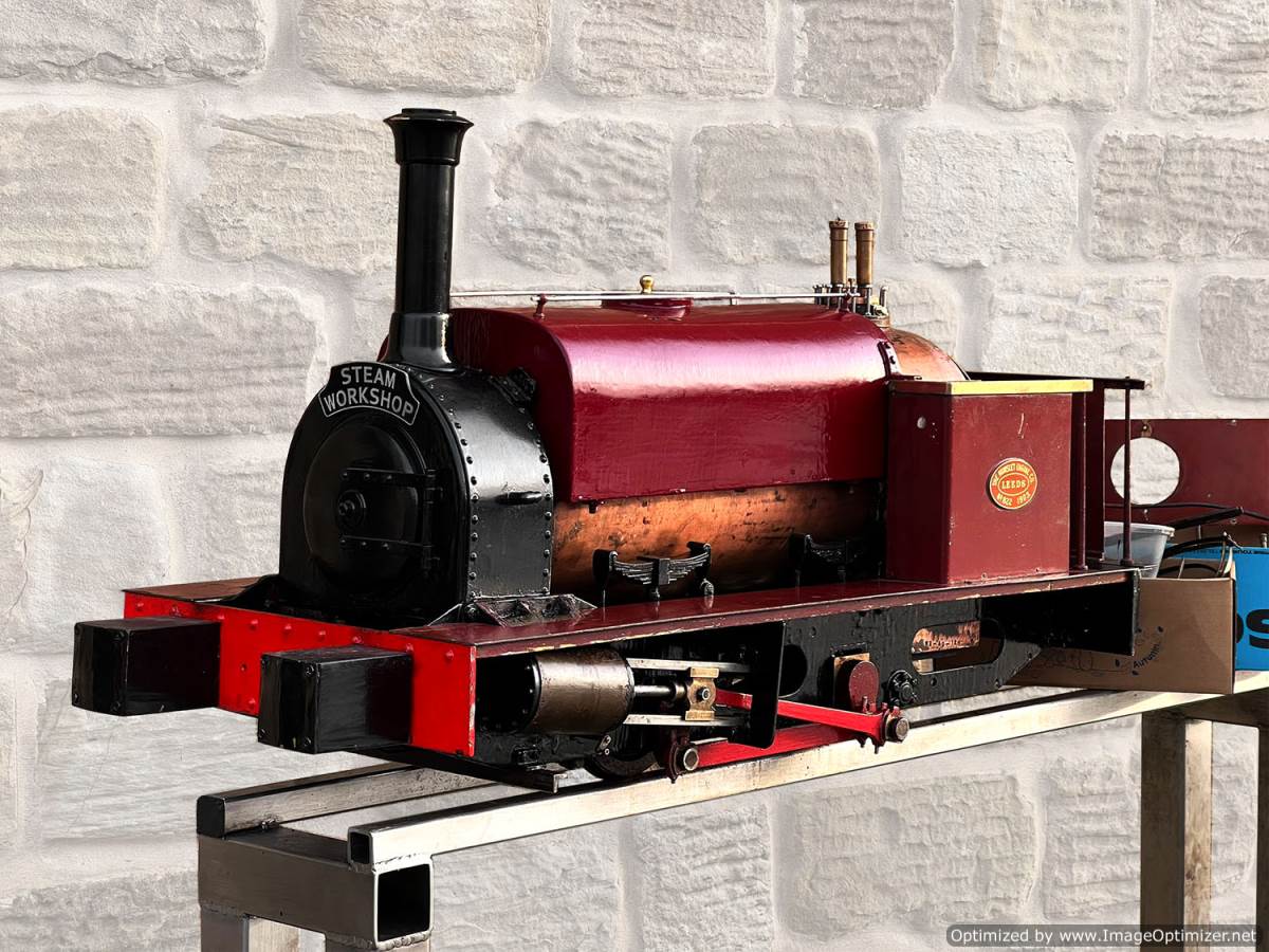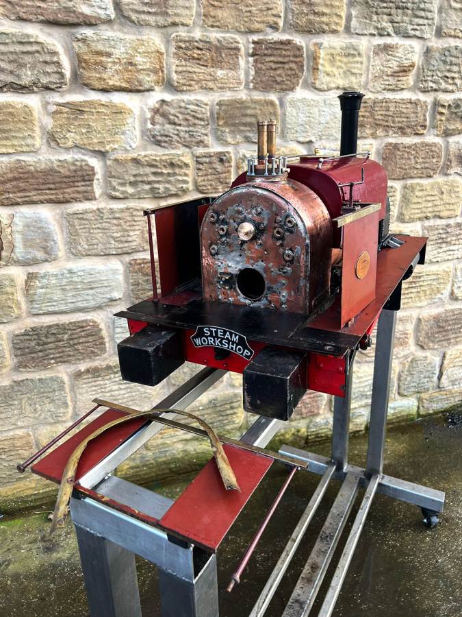 Here we have a 5" gauge Quarry Hunslet to Don Young's design. This was a complete and running loco until it was stripped down for a re-paint and boiler tests, a project which ultimately floundered. The mechanics of the engine looks ostensibly in good condition albeit a bit grimy, and we can give the silver soldered copper boiler a fresh hydraulic shell test.