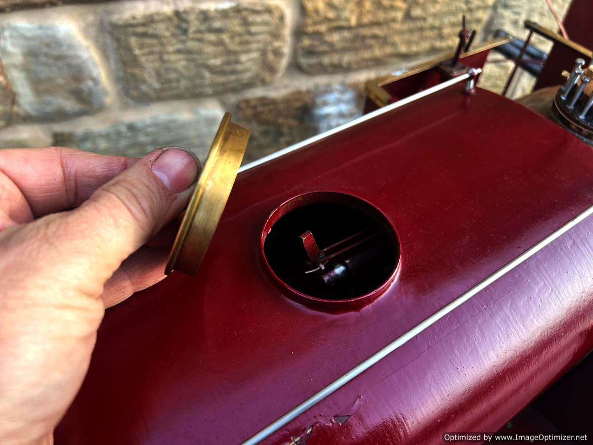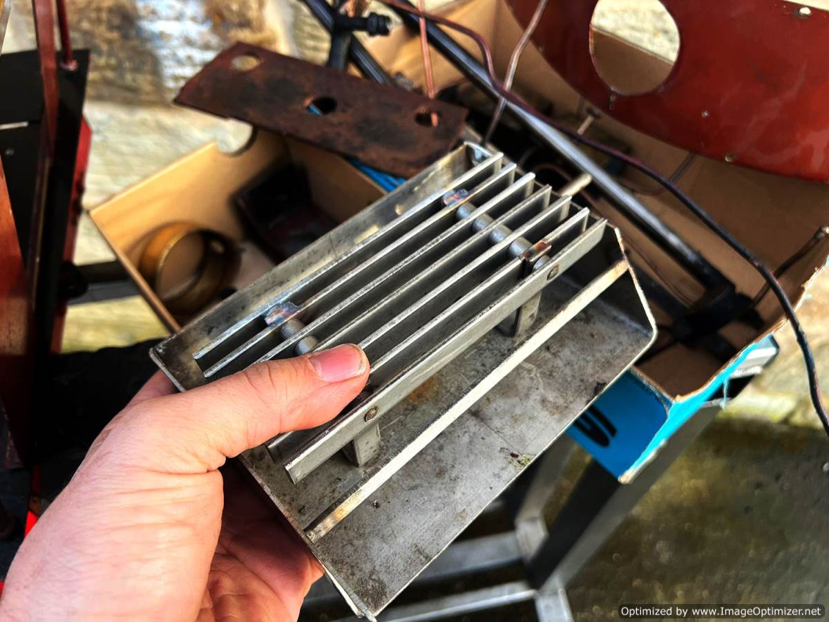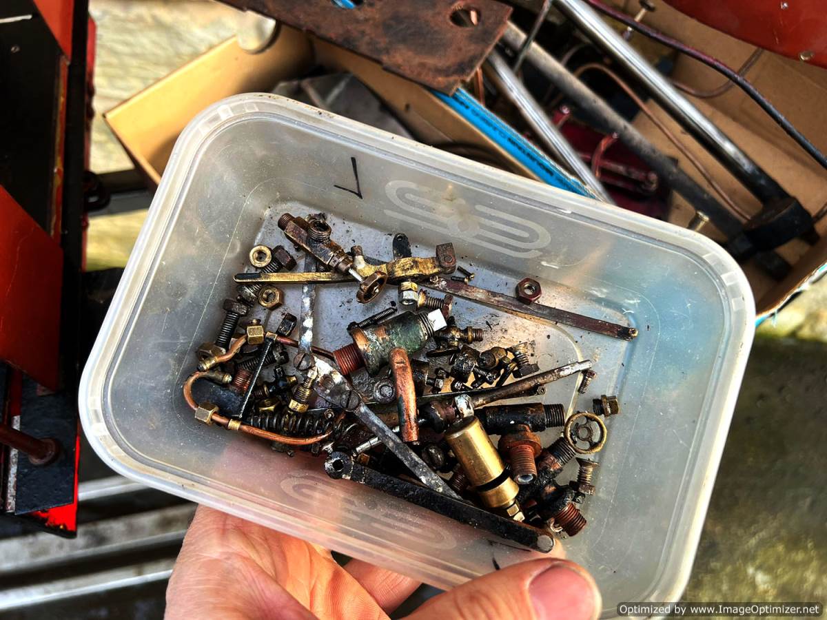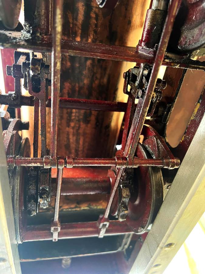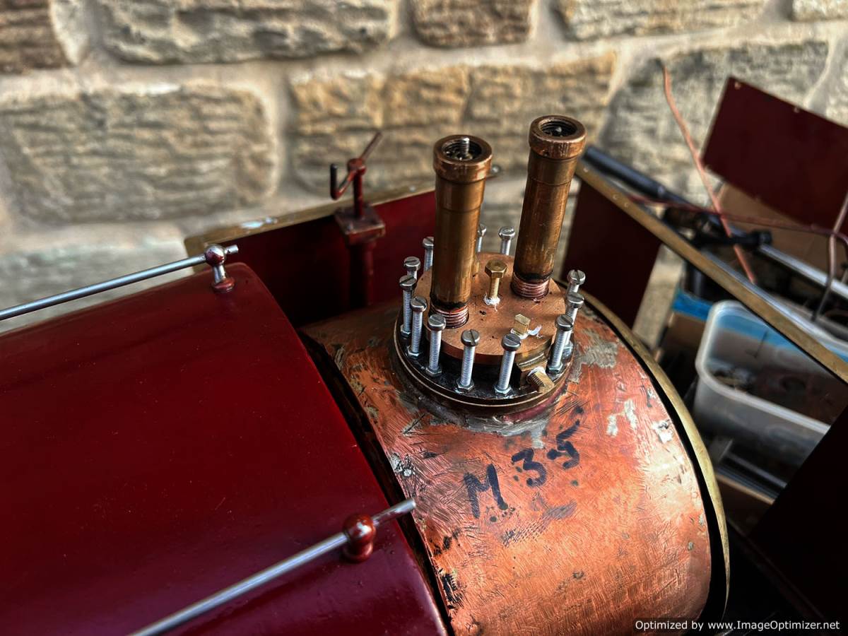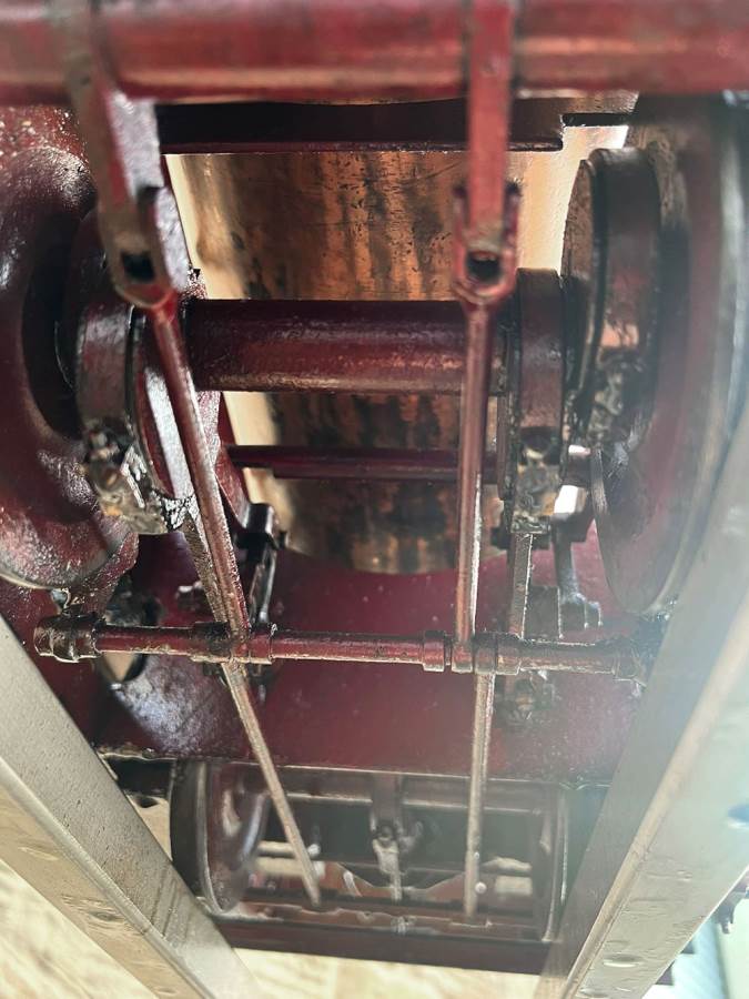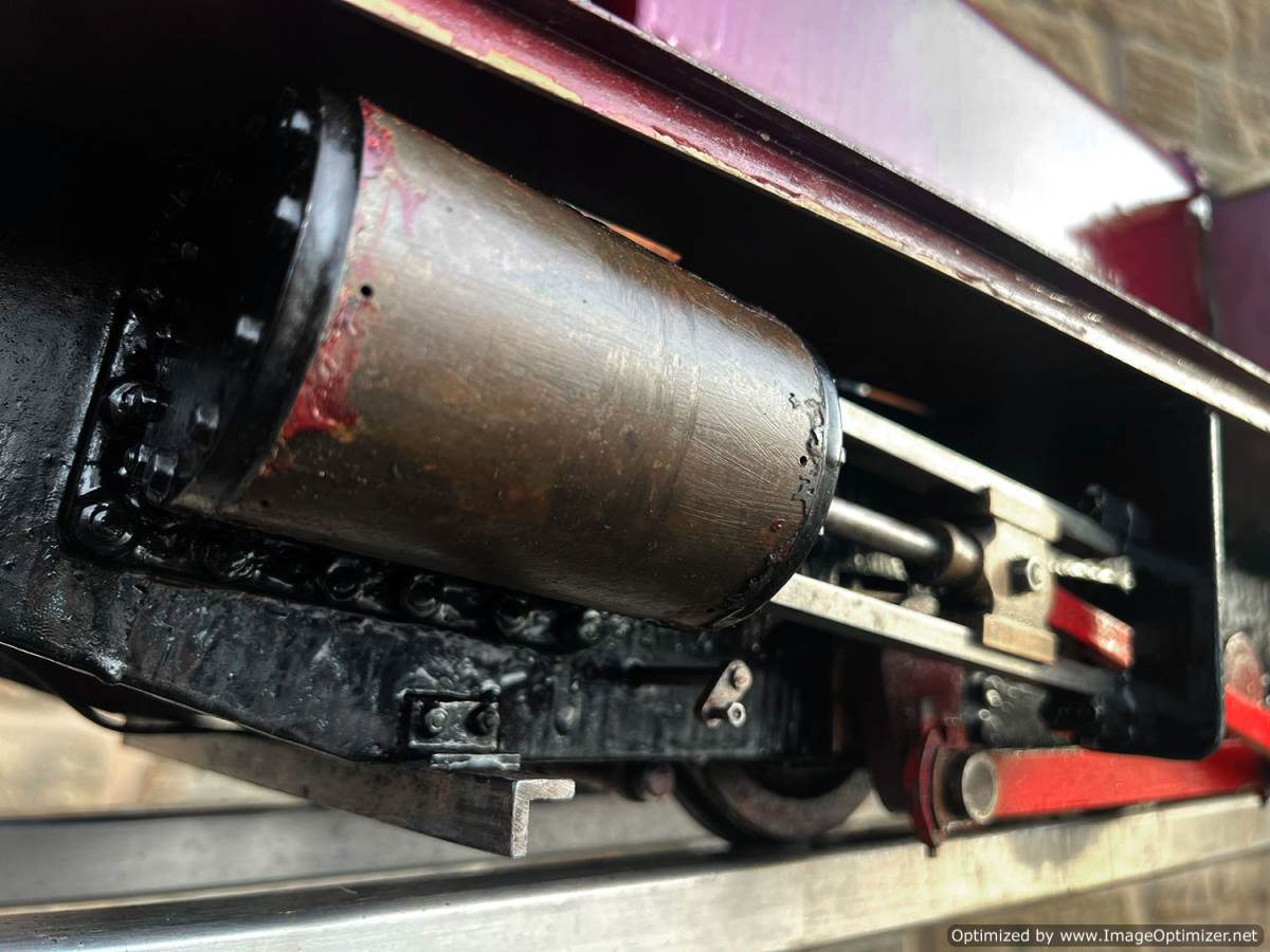 Here we have a 5" gauge Quarry Hunslet to Don Young's design. This was a complete and running loco until it was stripped down for a re-paint and boiler tests, a project which ultimately floundered. The mechanics of the engine looks ostensibly in good condition albeit a bit grimy, and we can give the silver soldered copper boiler a fresh hydraulic shell test.