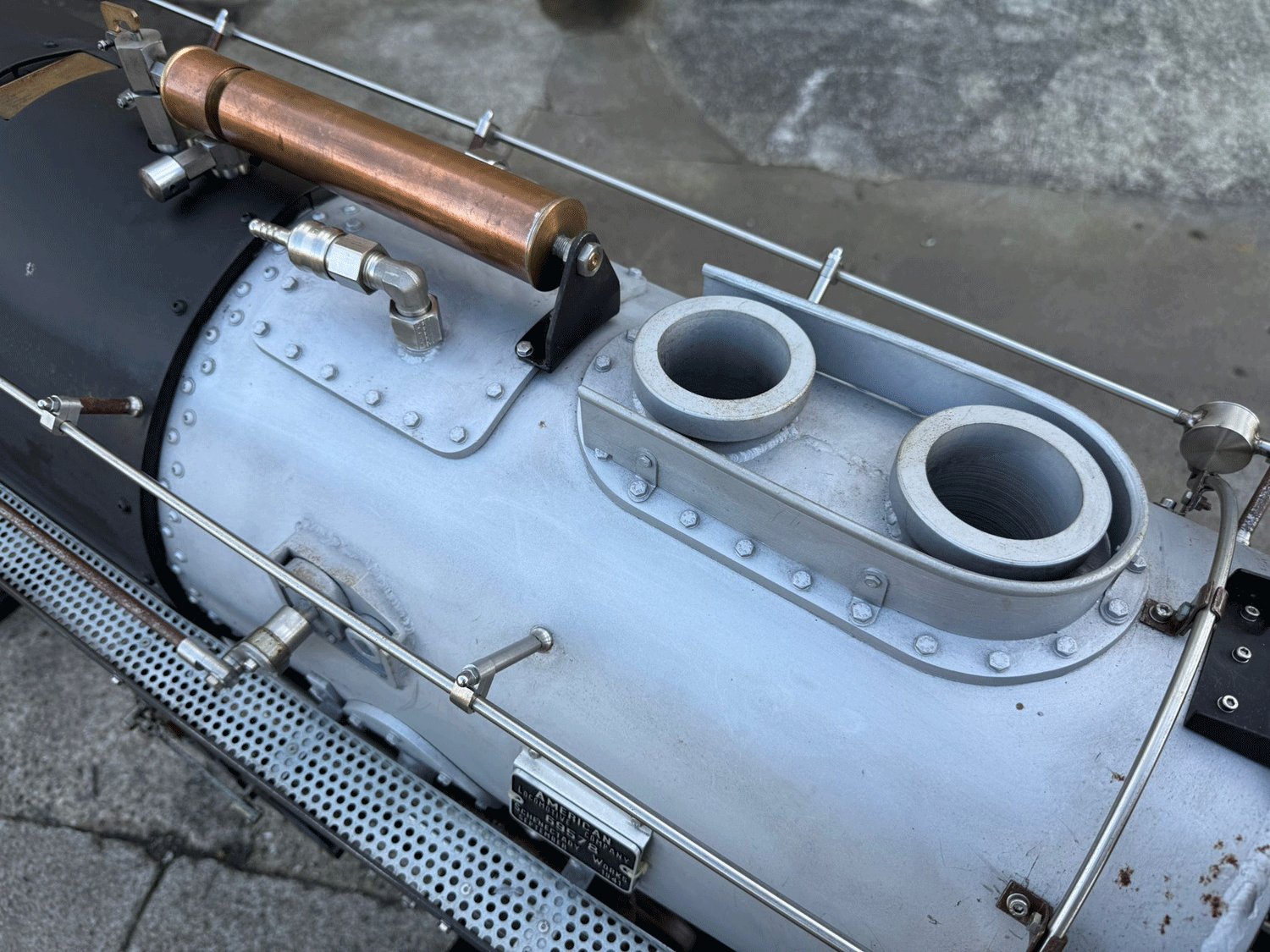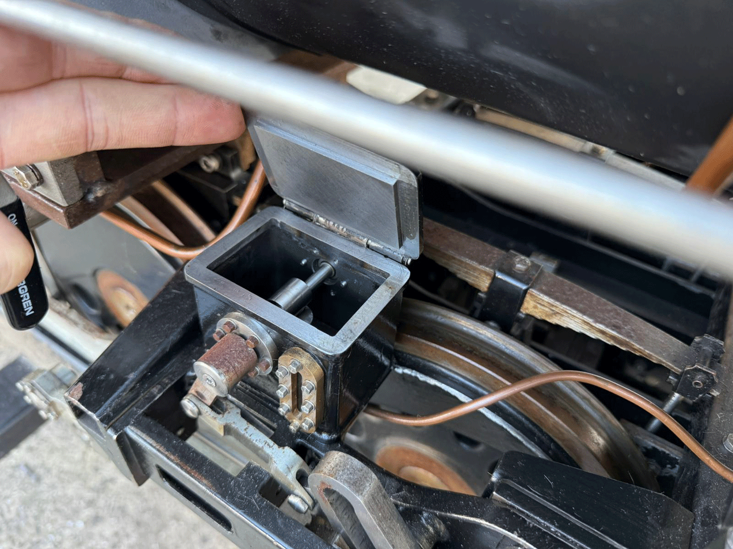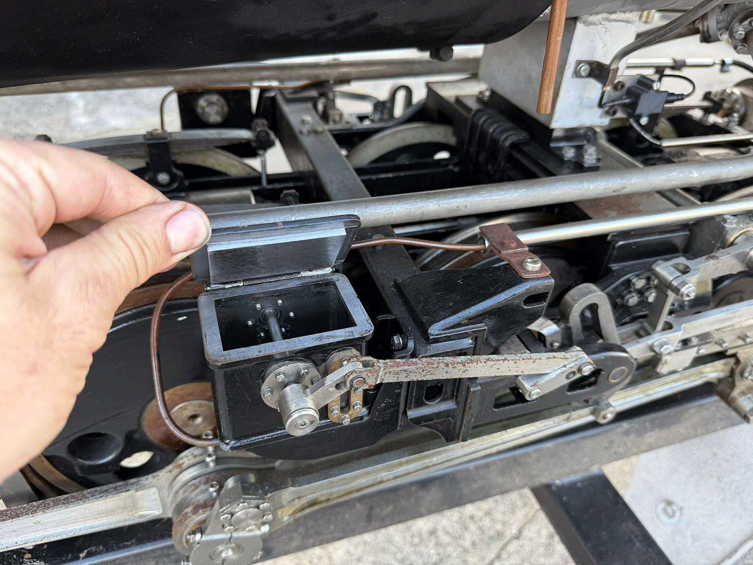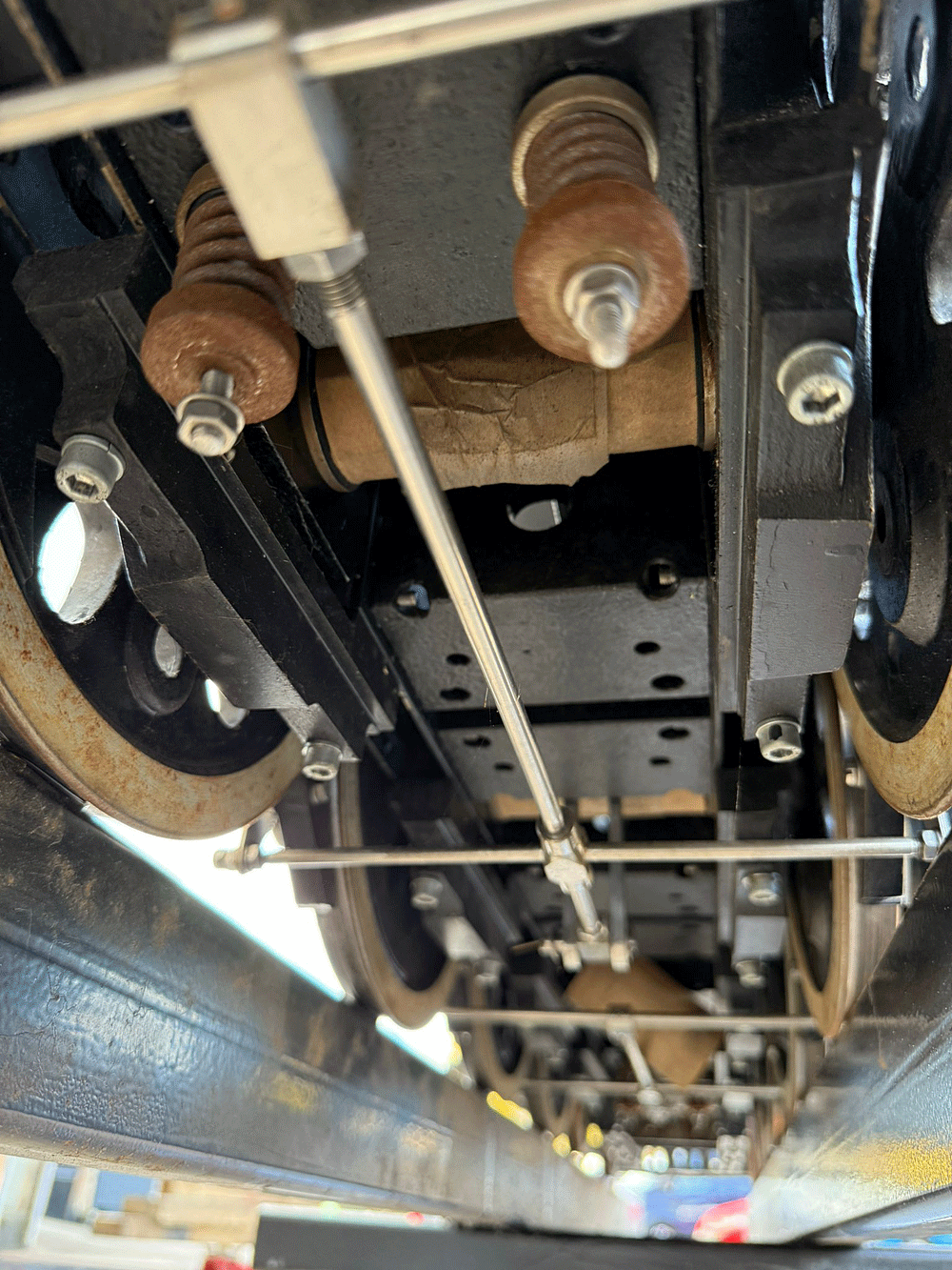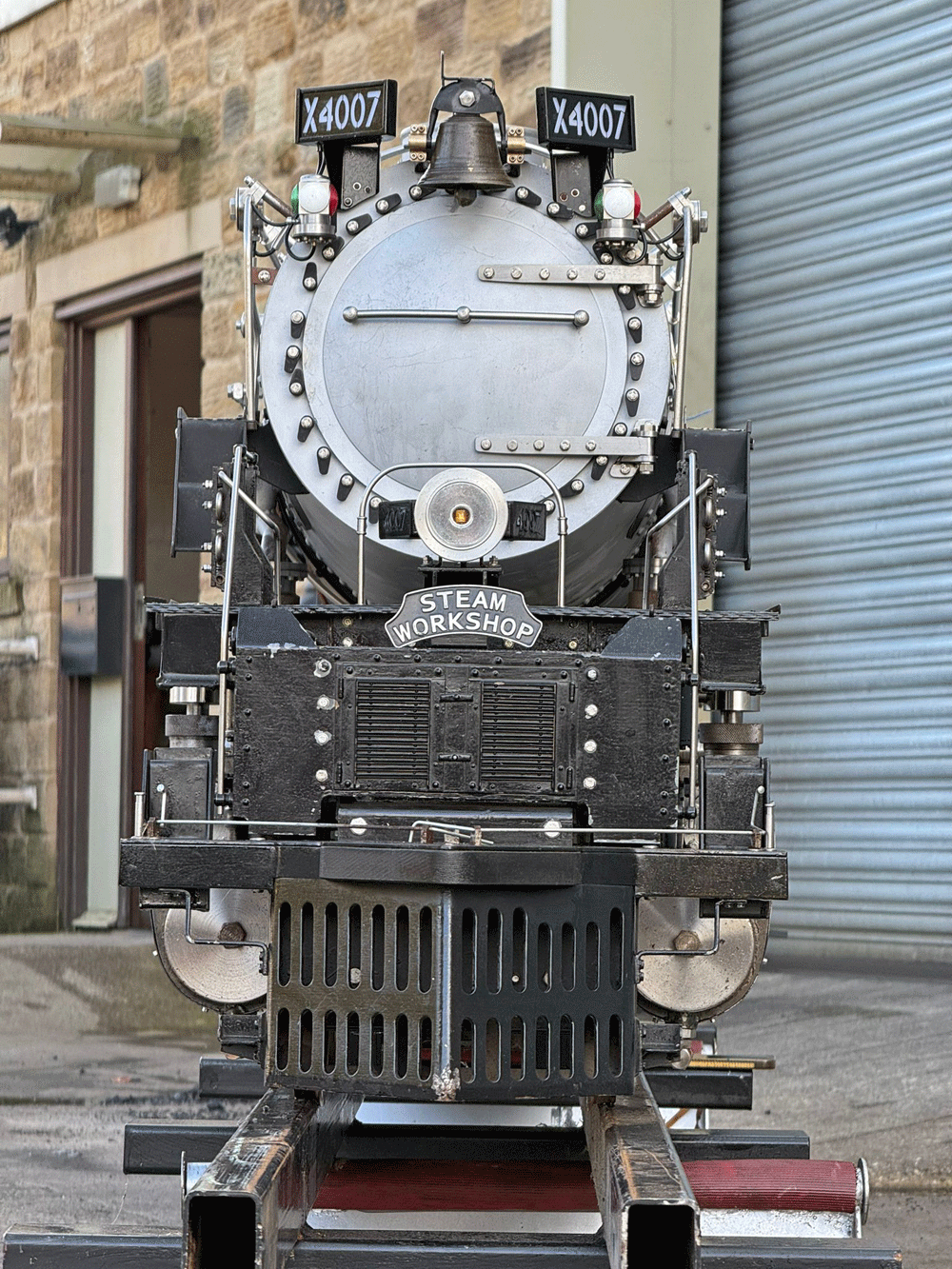 The correctly shaped boiler is steel with expanded in steel tubes, and is professionally (and nicely) made with all the important certification and paperwork. The bottom end is all there, and has run on air, and has also been tested around the track to make sure everything rolls, bends and follows the track as it should!