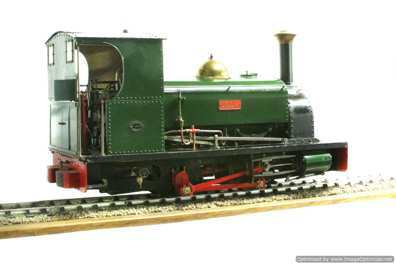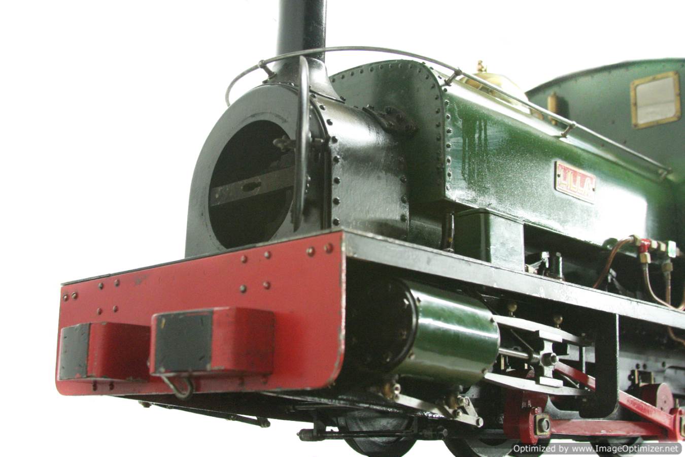 Here we have a rather lovely 3 1/2" gauge 'Port' class quarry Hunslet to the 'Lilla' design by Ross Harrison. It isn't one of the much more common, Martin Evans' designed 'Conway' models which is actually a freelance design. 'Lilla' works out at quite a large model in 3 1/2", as big as your average 5" gauge Butch, Chub, Ajax,..... even getting close to the size of a Simplex. It's also a satisfyingly prototypically accurate model.