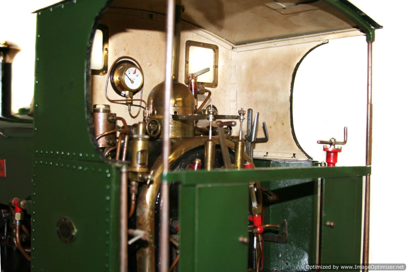The Photos should hopefully give you a good idea of the quality of the workmanship, and the finish, which in this case is tidy and neat rather than exhibition quality. We are quite taken with this little beauty, it's a very lovely thing in the flesh. Two types of lubrication fitted, there is a mechanical on the running board, and there is a displacement with a sight feed on the footplate. Draincocks are footplate operated, and there is an injector, an axle pump and footplate mounted bypass,..... and the ubiquitous emergency hand pump sneaked away tidily in the dummy coal bunker inside the cab.