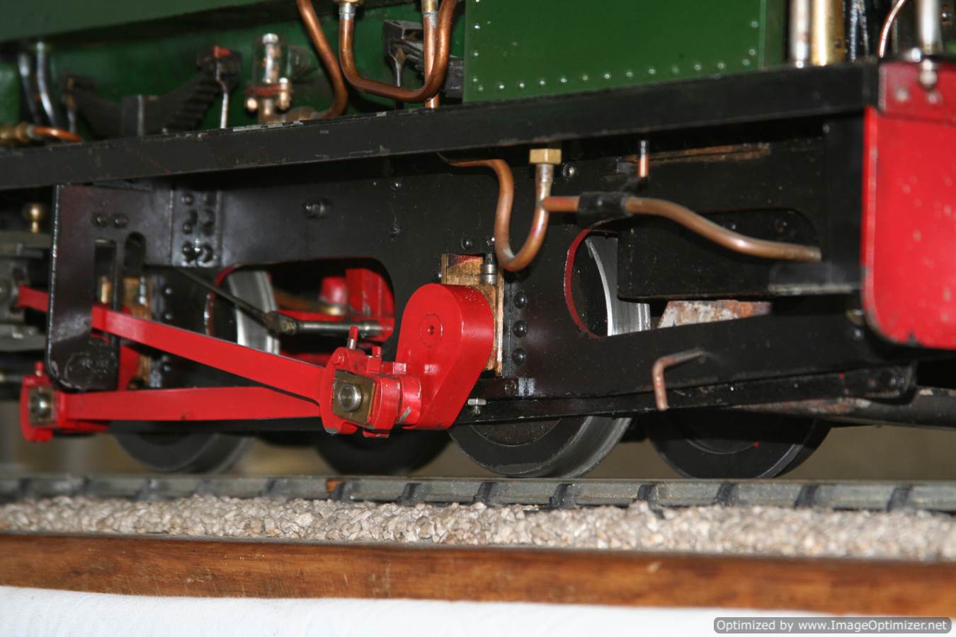 She is superheated, and there's lots of lovely little touches, things like the fish bellied slide bars and the pretty little turned ball lubricator pots ontop of them, the working salter safety valves,.... even a nicel wooden disk upon which the pressure gauge is mounted just give it that 'x' factor.