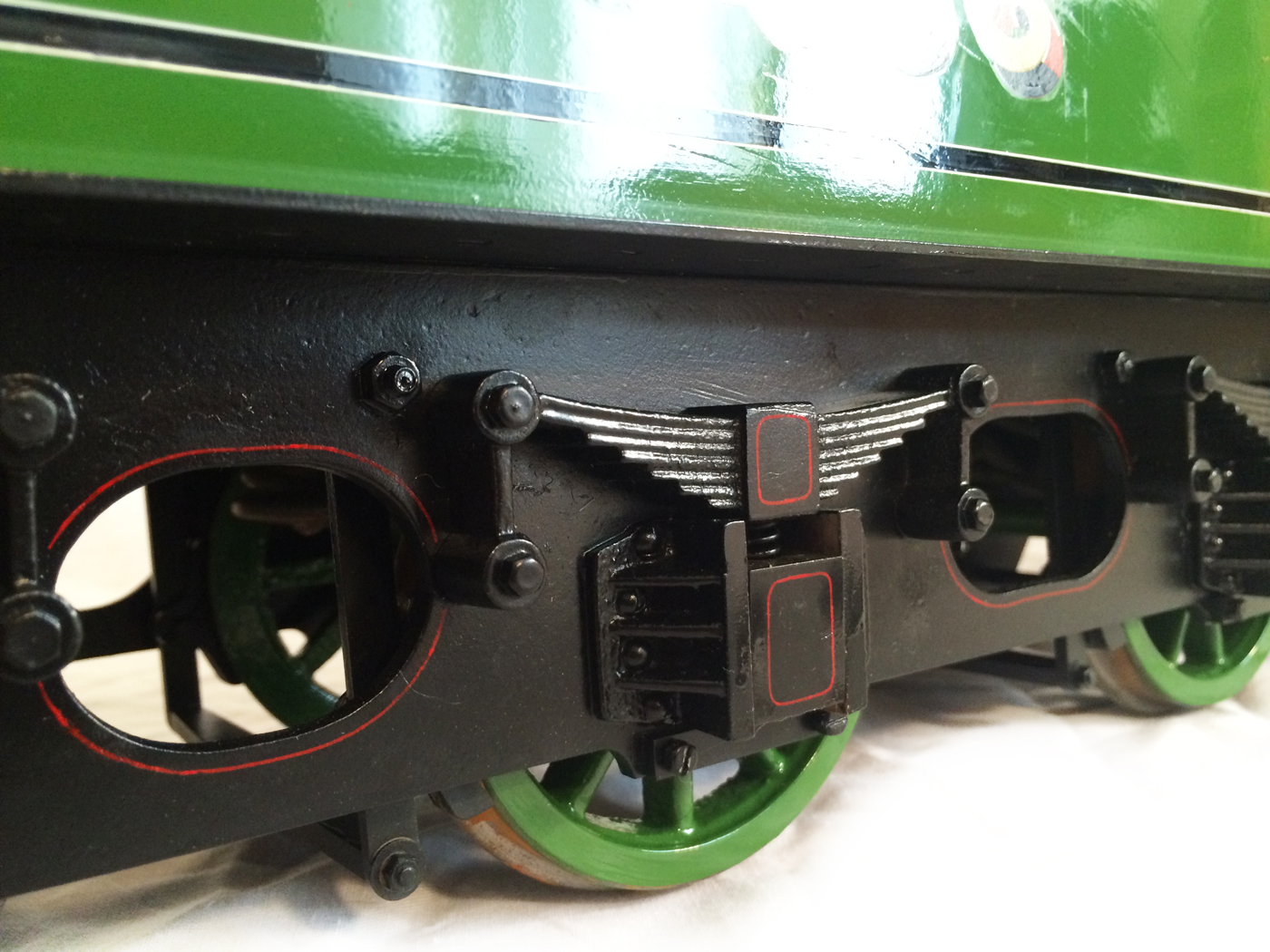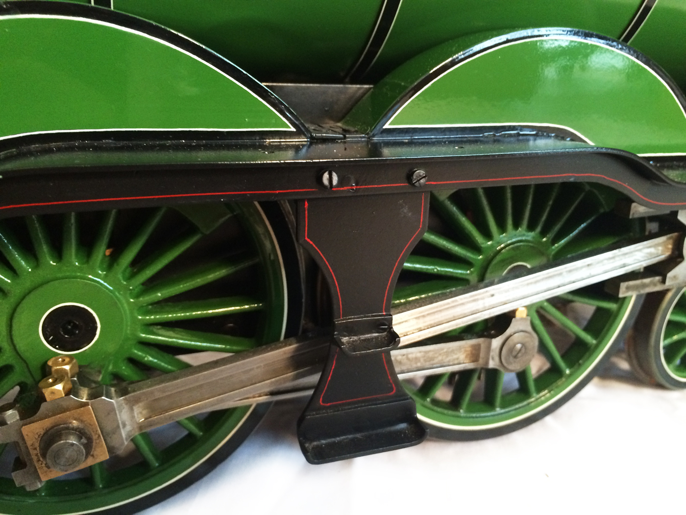....and the white lines can begin to go onto the cab, running boards, boiler bands and wheel rims.