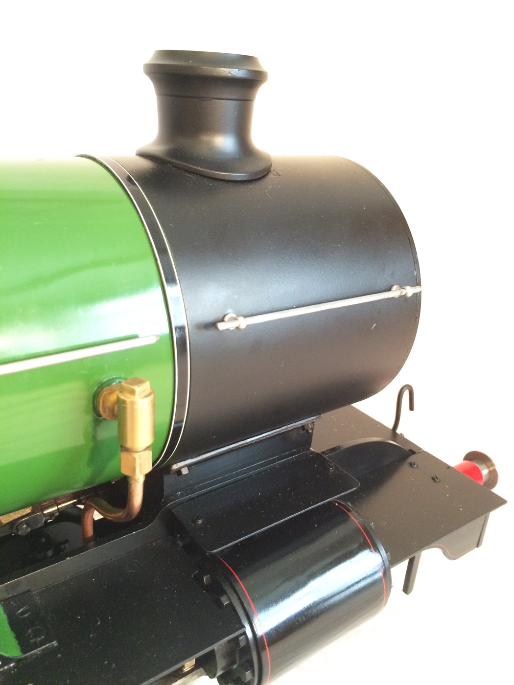 This is how the loco came to us. Brand new, unsteamed and nicely built. But in some odd and badly applied colour scheme.